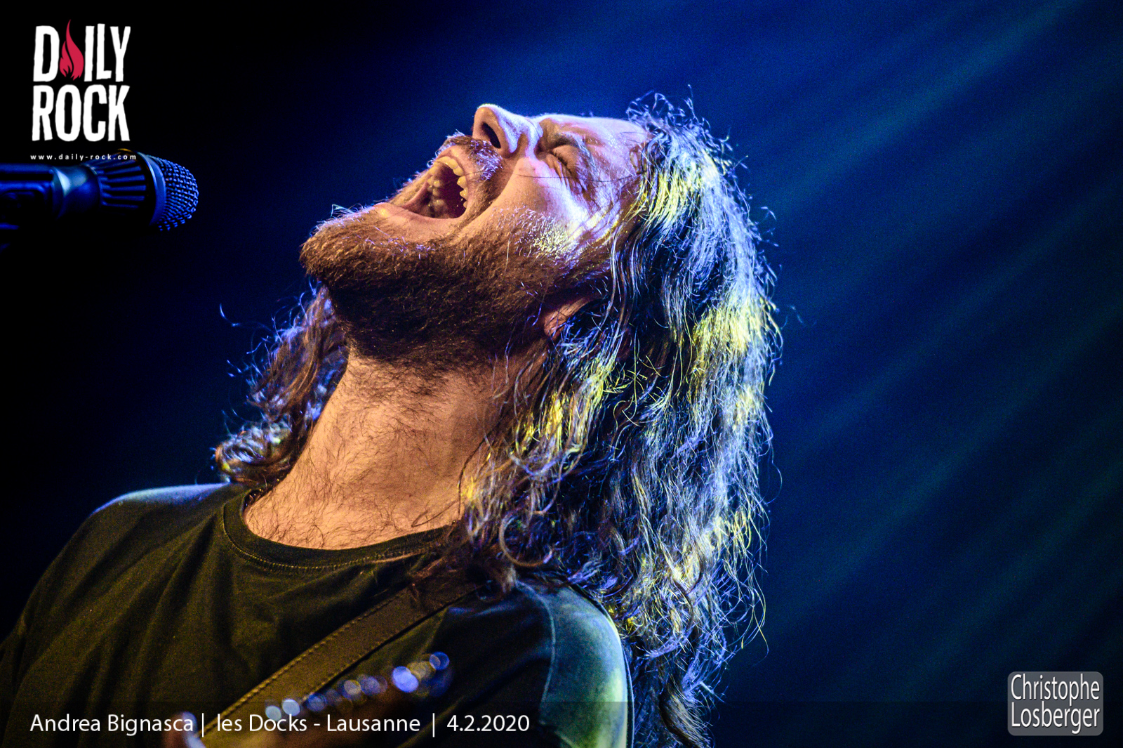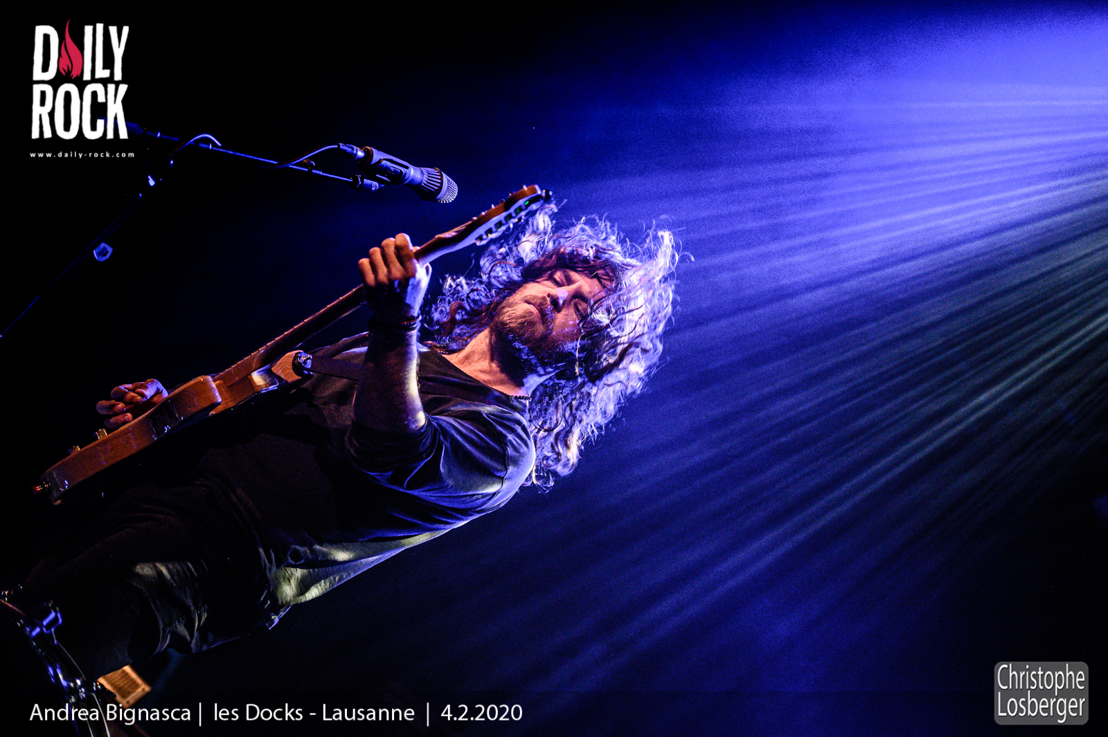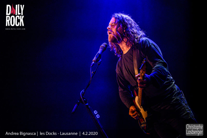 En première partie, le tessinois Andrea Bignasca a également fait une excellente prestation. En mode one man band avec sa guitare électrique, sa voie et une grosse caisse et un énorme charisme, il nous a livré un spectacle mêlant blues et pop/rock avec des sonorités très seventies. Le tout servi par une remarquable voix. Un monsieur à revoir !
