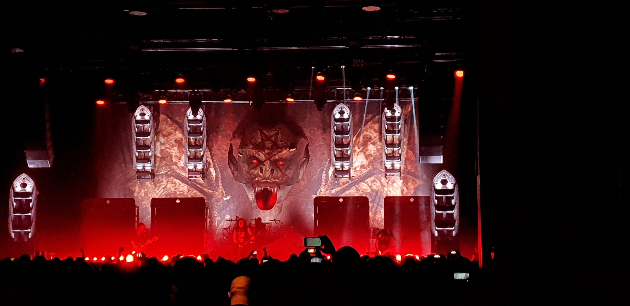 Finalement, le dernier groupe de la soirée. Le concert commence par une projection sur un rideau, nous avertissant avec sympathie que Zurich devait se préparer à en prendre bien cher. Tomber de rideau, on trouve les Allemands Kreator qui nous balancent comme entrée ‘Enemy of God’. Et c’est à ce moment qu’on remarque aussi que c’est eux qui sont le plus attendus durant cette soirée à la Halle 622. Et ils en font des caisses : pyrotechnie, backdrop avec une immense tête de gargouille aux yeux en led, apparaissant et disparaissant dans la brume constante, ça pète les yeux dans tous les sens. Et eux, imperturbables malgré tout cela, nous servent du bon vieux trash, menant à la joie et à la formation de petits pogos. En somme toute, une soirée placée sous le signe de la cohabitation des différents genres dans le metal, et ça fait du bien !