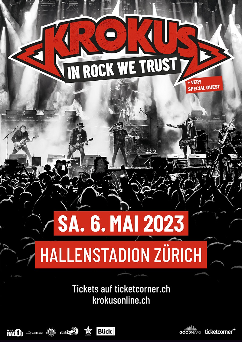In Rock We Trust, tel est le message envoyé par Krokus pour annoncer leur venue au Hallenstadion de Zurich le 6 mai 2023.