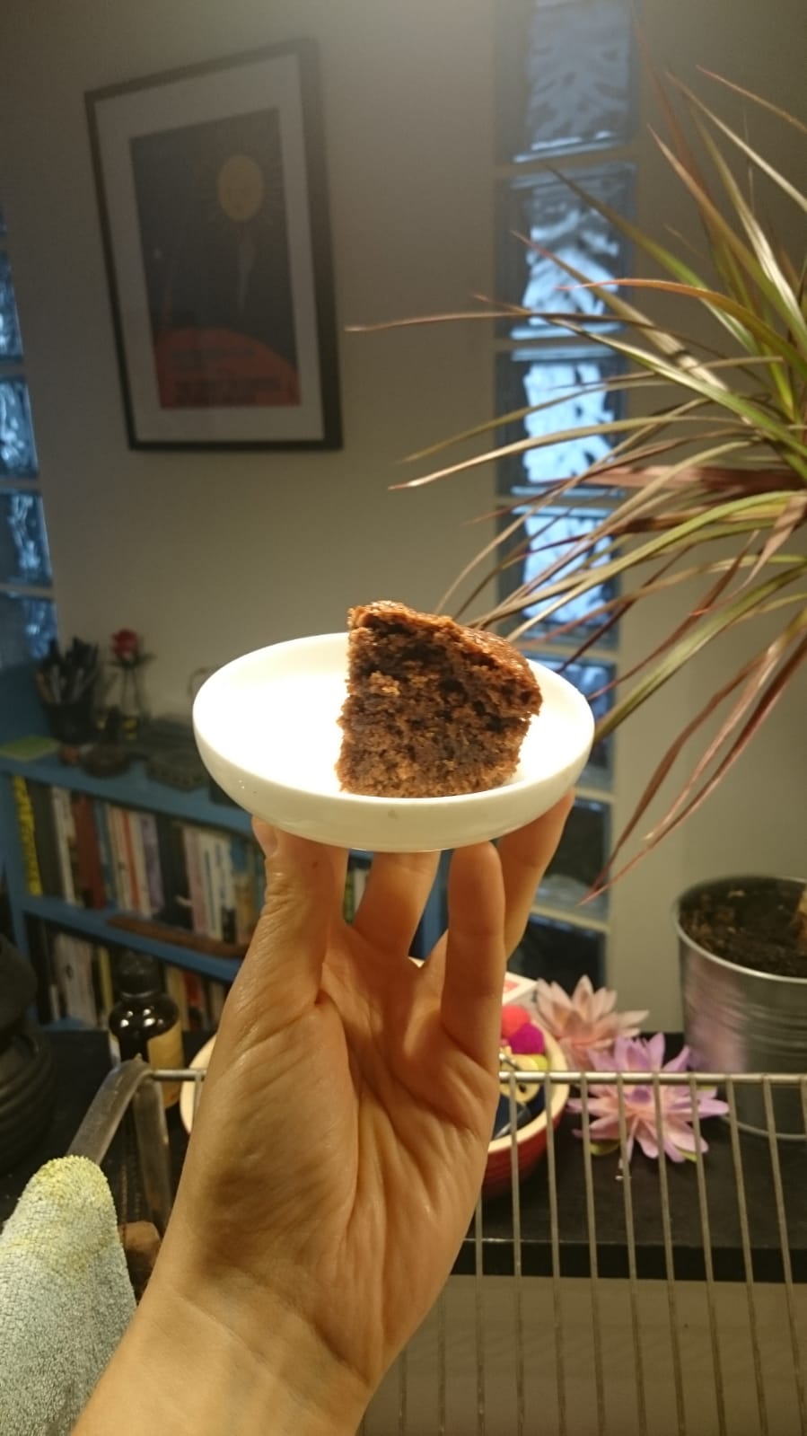 Enfournez votre mixture durant 35min. Au bout de 30 min, jetez-y un œil, on sait jamais, mon four est hyper nul et c’est les montagnes russes émotionnelles et mes cakes sont parfois orgasmiques, parfois à la poubelle. Bref, le secret vous le connaissez bien, plantez une pointe de couteau dans le cake. Si la lame ressort sèche ou légèrement humide, well done, votre dessert est cuit. Sinon, retour dans le four. C’est presque l’occasion pour se décapsuler une bière non ?