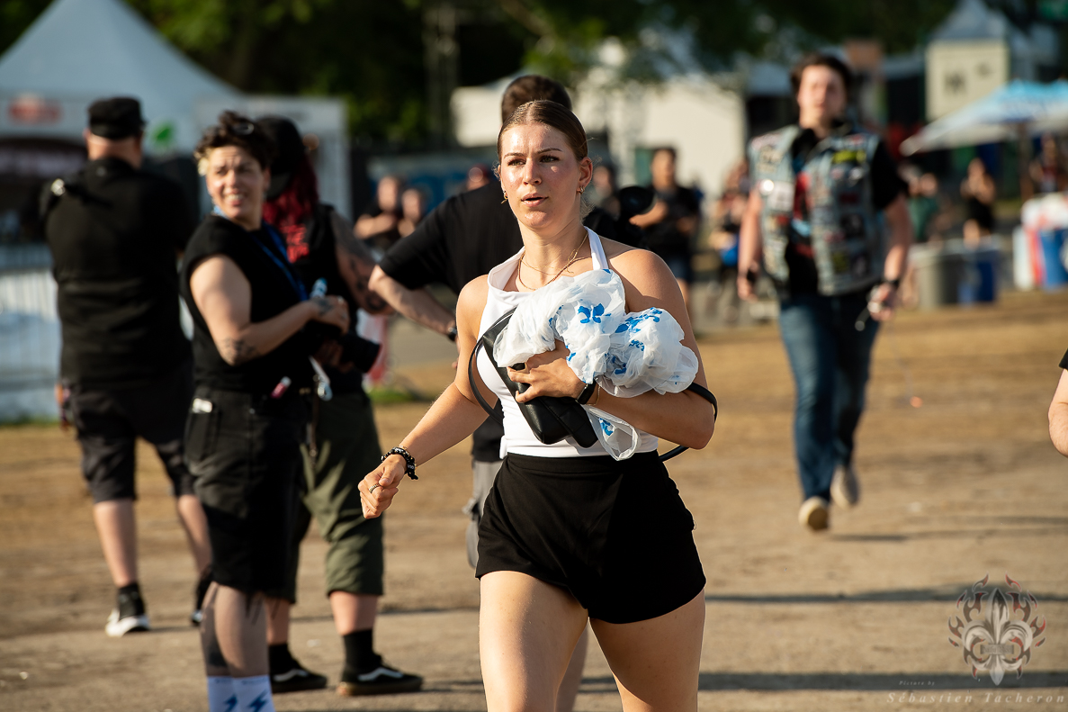 Après être passés au détecteur de Metal (eux), afin de vérifier la pertinence de leur présence sur les Plaines, les premiers sprinteurs arrivent au-devant des barrières. La cérémonie débute avec Sandveiss, les locaux de la place. Je les avais déjà vus au FEQ en ouverture de Megadeth, et j’avais trouvé que leur musique n’était pas mise en valeur dans un endroit aussi vaste. Eh bien, ce soir, je revois mon jugement.