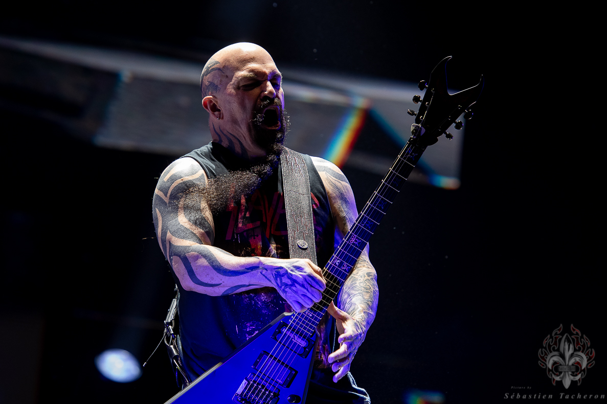 Malgré le peu de concerts joués par les Californiens cette année, sauf erreur six au total, ils livrent une solide performance. Gary Holt et Kerry King sont impériaux aux guitares, Paul Bostaph martèle ses fûts comme un malade, ou comme Animal du Muppets Show, et Tom, c’est Tom… les vrais sauront.
