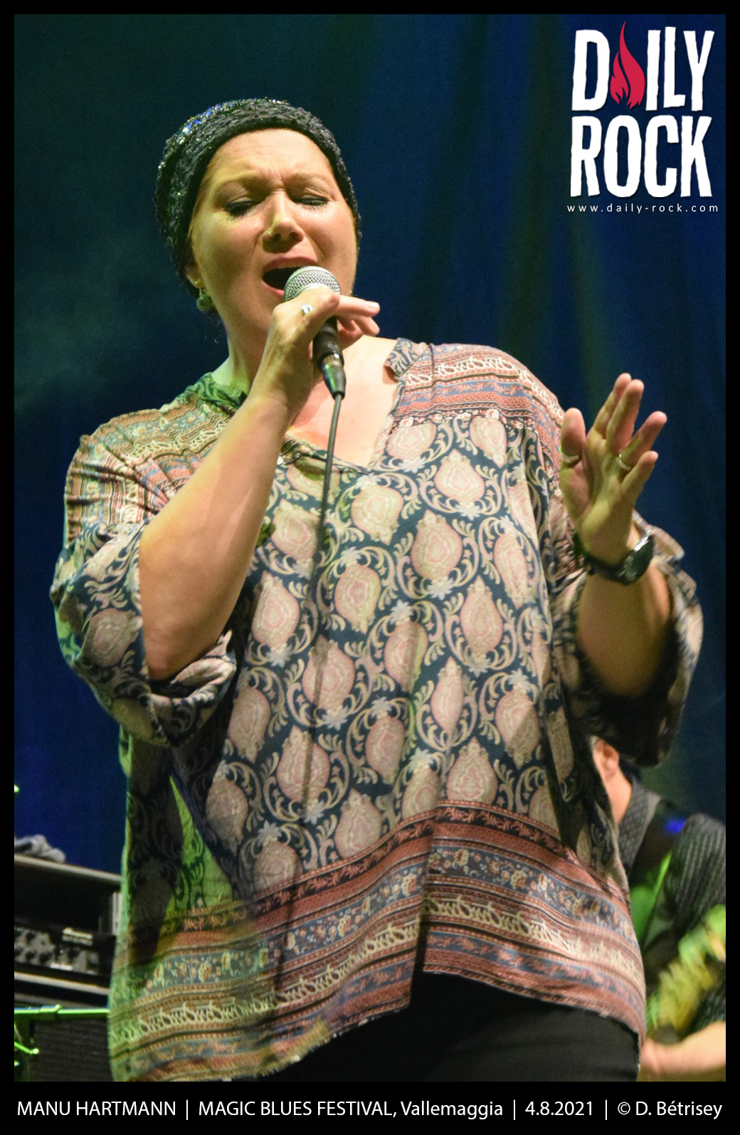 Quand je prends connaissance de l’affiche 2021, dix dates étalées du 9 juillet au 5 août, la « Lady’s Blues Night », avec Manu Hartmann et Laura Cox me saute de suite aux yeux, en plus le 4 août je suis en vacances …. Tip Top !, je téléphone à mes connaissances tessinoises qui m’invitent de suite à venir chez eux.