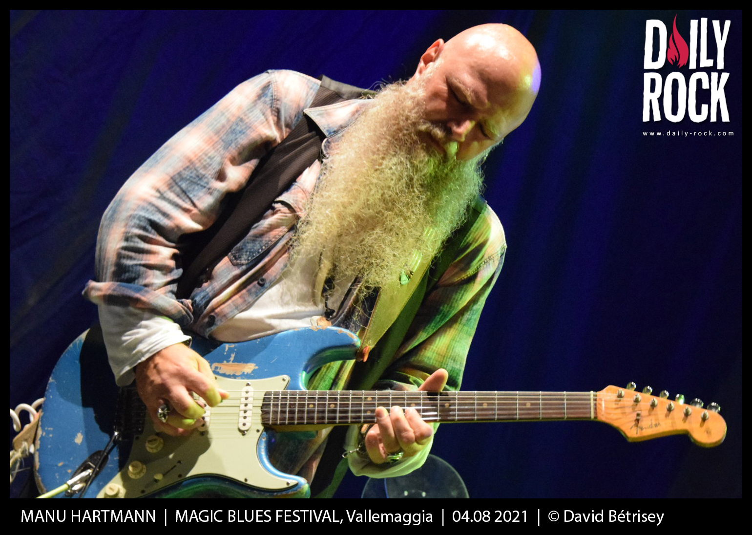 Arrivé le début août, la météo est moche en Valais, et oui ! Je suis donc très content de mettre le cap au Sud et de partir vers le Tessin … Patatra, la météo est encore pire ! On m’accueille au Magic Blues sous des trombes d’eau, les gens sont fatigués et tristes car le temps n’a pas été très sympa avec eux pour cette édition. Leur accueil est à la hauteur de leur déception, juste énorme. Une belle équipe, soudée, chaleureuse, qui est fière de son Valle Maggia et fait tout pour que ses hôtes soient reçus comme des princes, et ce fut le cas, je suis reçu comme un Roi !