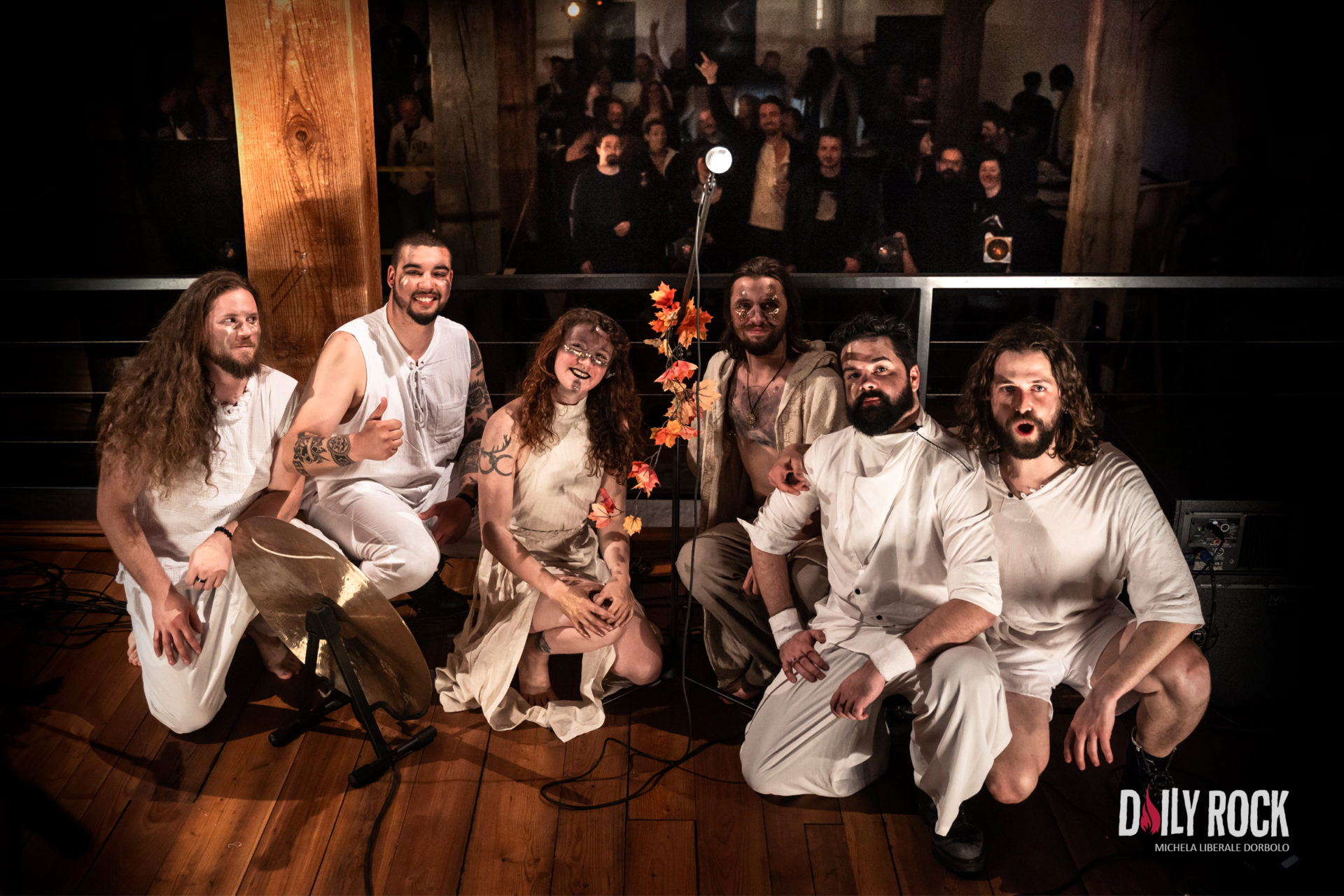 La Vidondée se remplit peu à peu de spectateurs, leurs silhouettes se fondant dans les ténèbres comme des ombres affamées. Sur la scène, éclairée par une lueur mourante, un groupe de six êtres vêtus de blanc, leurs visages ornés de maquillages étincelants, s’apprête à invoquer le chaos. Ainsi débute le rituel de De L’Abîme Naît L’Aube, une cérémonie dont la puissance occulte promet une extase aussi déroutante qu’inexorable. Les murmures se taisent, laissant place à une tension palpable alors que le premier titre, « Une Pleine Absence », envahit l’espace, éveillant des émotions aussi sombres que captivantes.