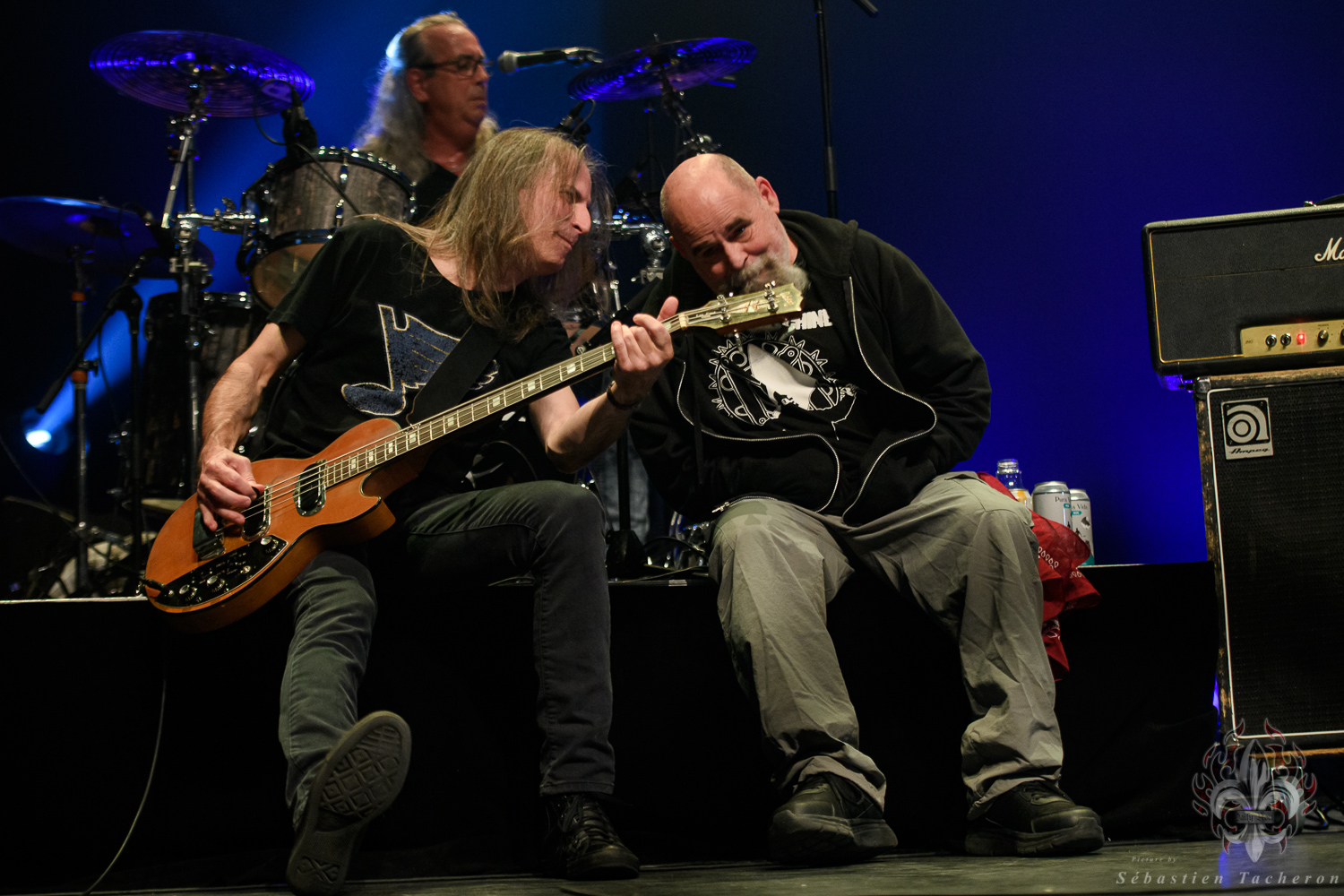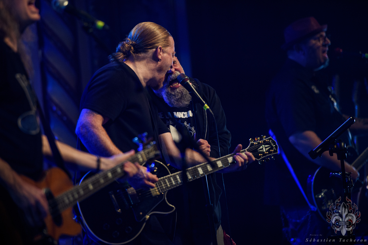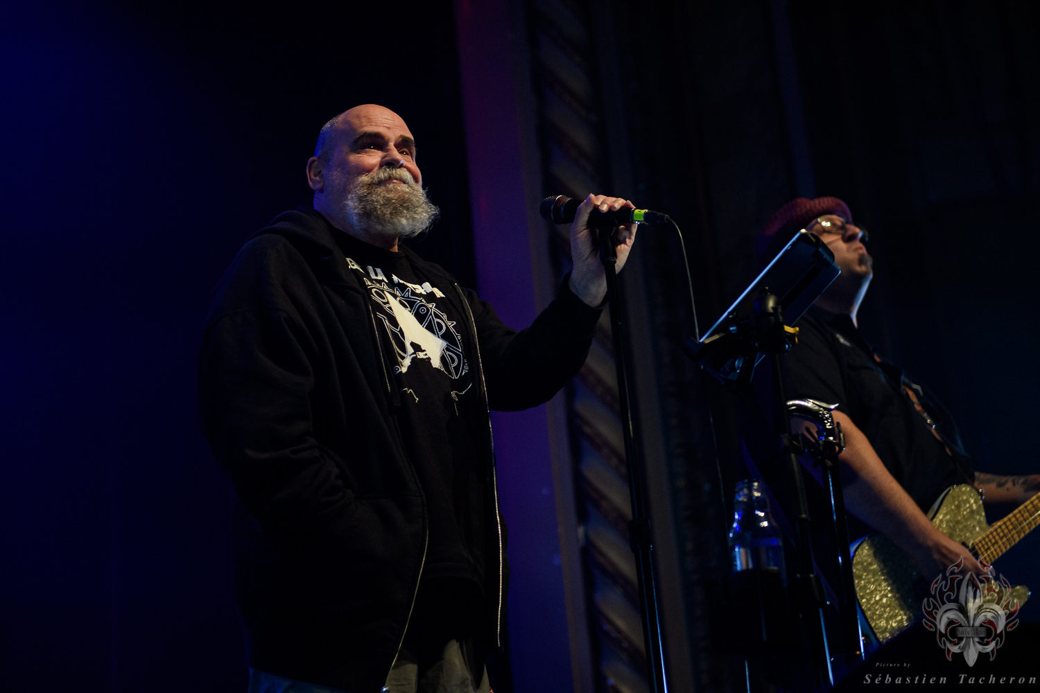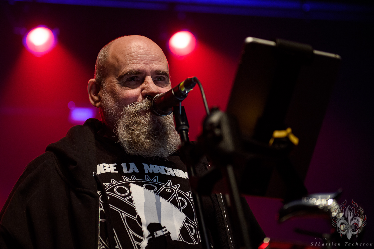 Si j’ai eu la chance, comme plusieurs Sherbrookois, d’avoir assisté à ce show, ce n’est rien comparé à ce que j’ai vécu juste avant. C’est grâce à Sébastien Tacheron, photographe talentueux et passionné pour Daily Rock Québec, que j’ai eu un accès privilégié au groupe. Sébastien, c’est l’artiste derrière les photos du présent article, mais aussi celui qui a pris le cliché et saisi l’âme de Rudy lors de la photo qui fait la couverture de son livre Rudy en 23 tounes. Avec lui, nous avons eu la chance de faire une entrevue avec Rudy avant le show, juste les trois ensemble dans sa loge.