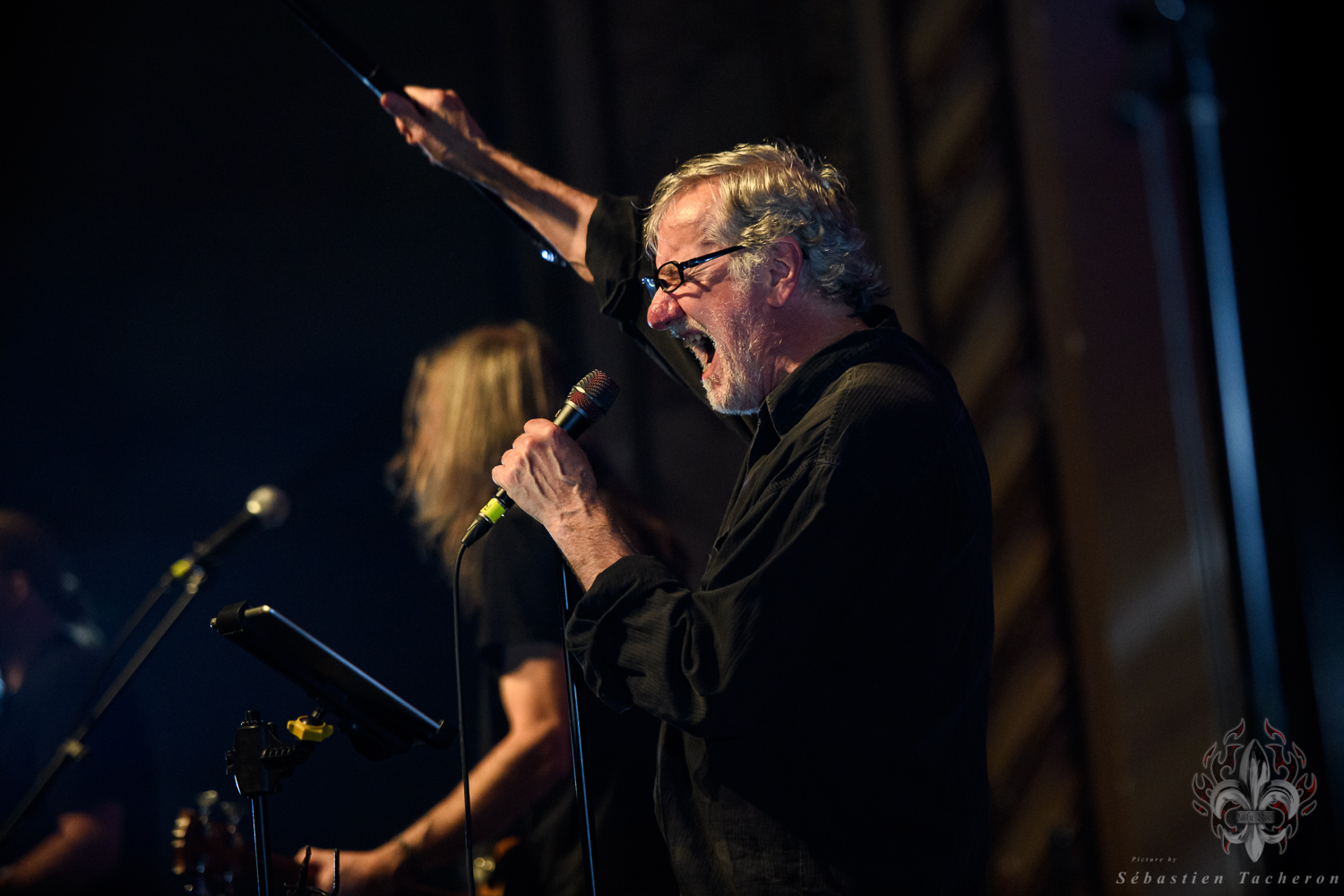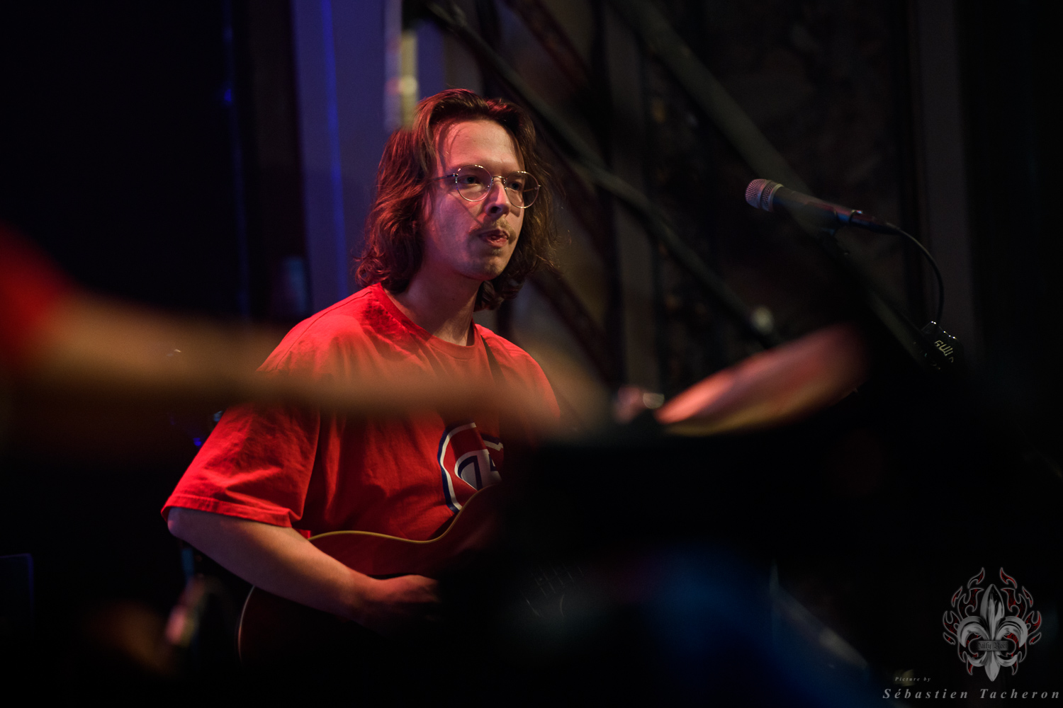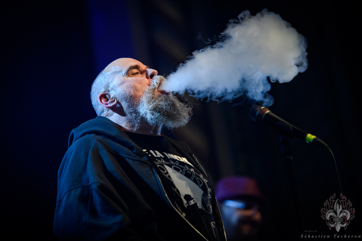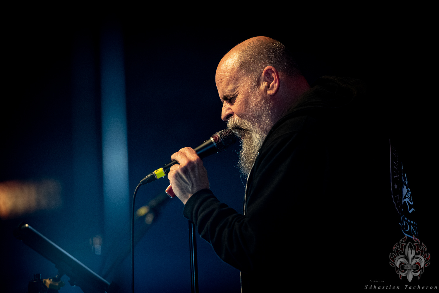 Si j’ai eu la chance, comme plusieurs Sherbrookois, d’avoir assisté à ce show, ce n’est rien comparé à ce que j’ai vécu juste avant. C’est grâce à Sébastien Tacheron, photographe talentueux et passionné pour Daily Rock Québec, que j’ai eu un accès privilégié au groupe. Sébastien, c’est l’artiste derrière les photos du présent article, mais aussi celui qui a pris le cliché et saisi l’âme de Rudy lors de la photo qui fait la couverture de son livre Rudy en 23 tounes. Avec lui, nous avons eu la chance de faire une entrevue avec Rudy avant le show, juste les trois ensemble dans sa loge.