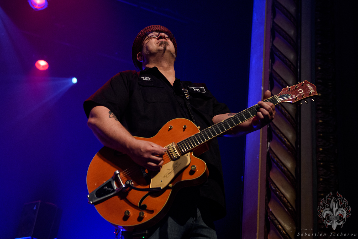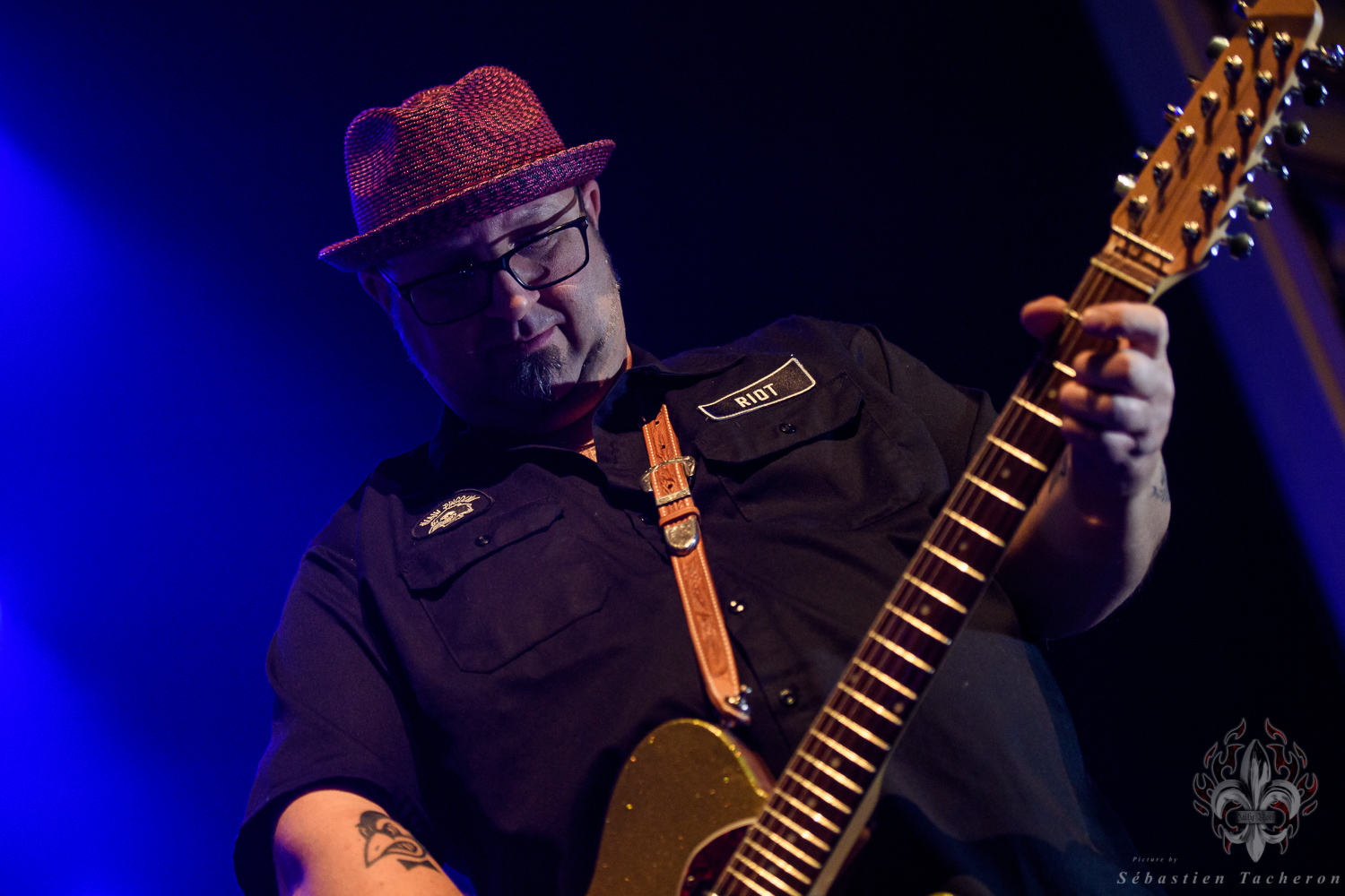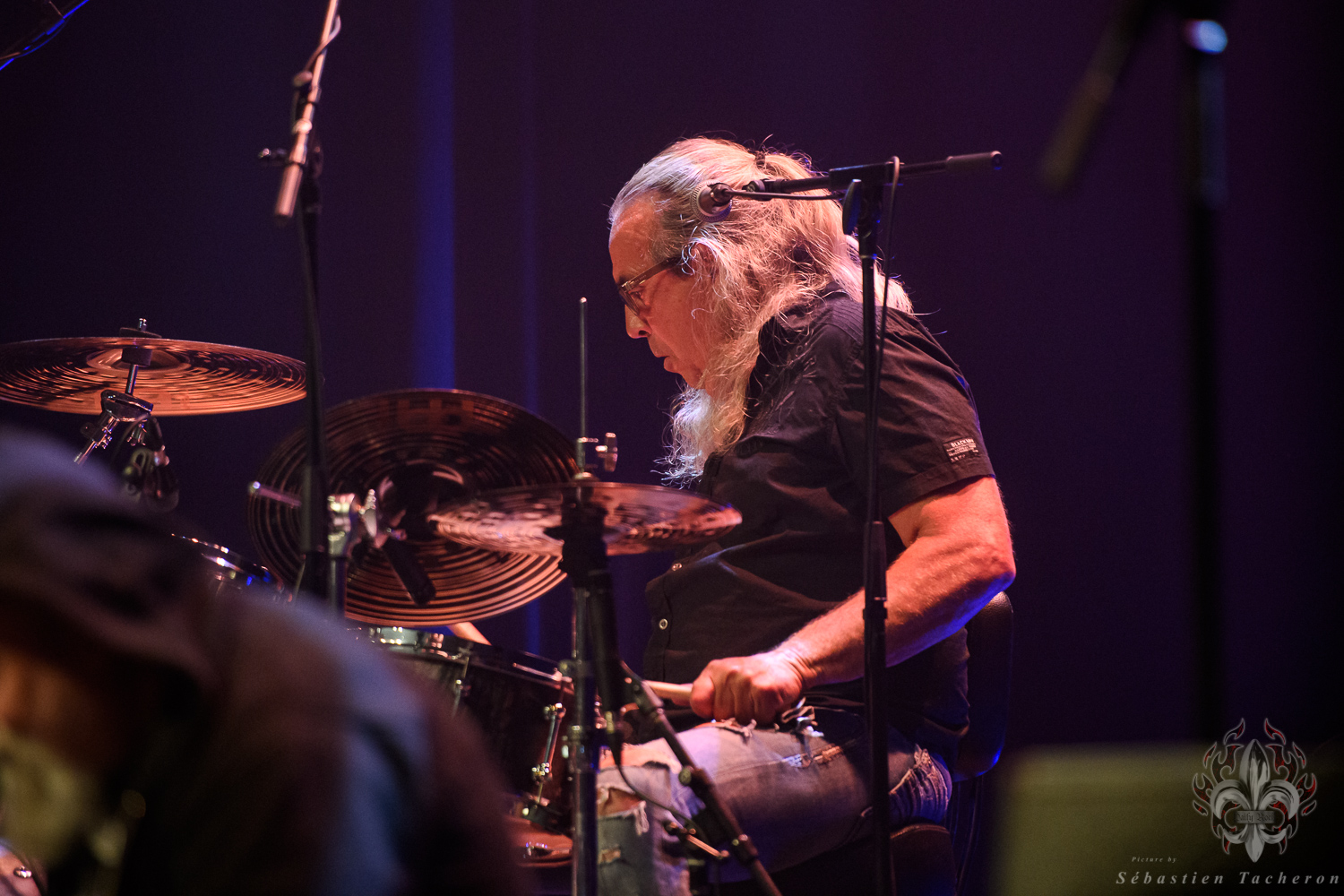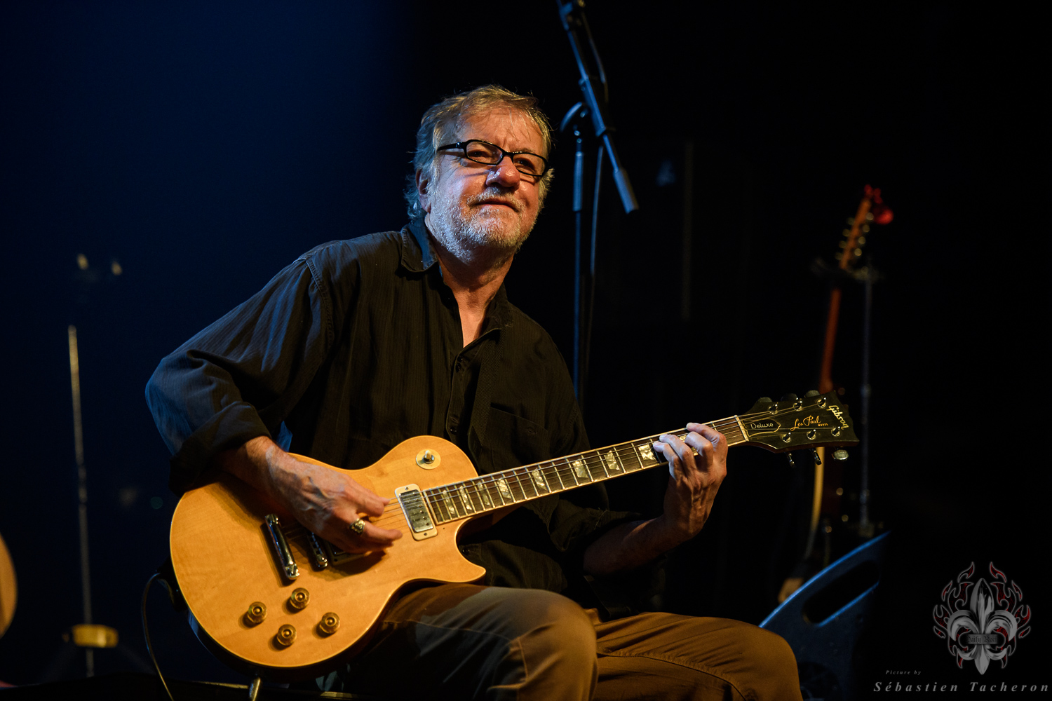 Si j’ai eu la chance, comme plusieurs Sherbrookois, d’avoir assisté à ce show, ce n’est rien comparé à ce que j’ai vécu juste avant. C’est grâce à Sébastien Tacheron, photographe talentueux et passionné pour Daily Rock Québec, que j’ai eu un accès privilégié au groupe. Sébastien, c’est l’artiste derrière les photos du présent article, mais aussi celui qui a pris le cliché et saisi l’âme de Rudy lors de la photo qui fait la couverture de son livre Rudy en 23 tounes. Avec lui, nous avons eu la chance de faire une entrevue avec Rudy avant le show, juste les trois ensemble dans sa loge.