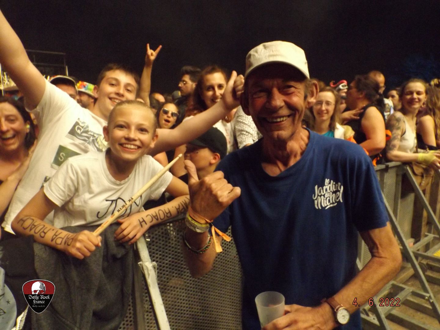 Mais avouons-le quand même, les plus attendus ce soir aux vues des nombreux fans se baladant sur le site, tee shirt noirs logotés sur le dos, ce sont les américains de Papa Roach. En tournée mondiale depuis plusieurs mois pour la promo de leur dernier album ‘Ego Trip’, Papa Roach nous offre un stop au Jardin du Michel. Et on le sait le show sera des plus punchy. Car Papa Roach, c’est une énergie folle sur scène qui fait craquer même les plus sceptiques. Et cela fait 30 ans que ça dure !!!! Et l’engouement ne faiblit pas au contraire !