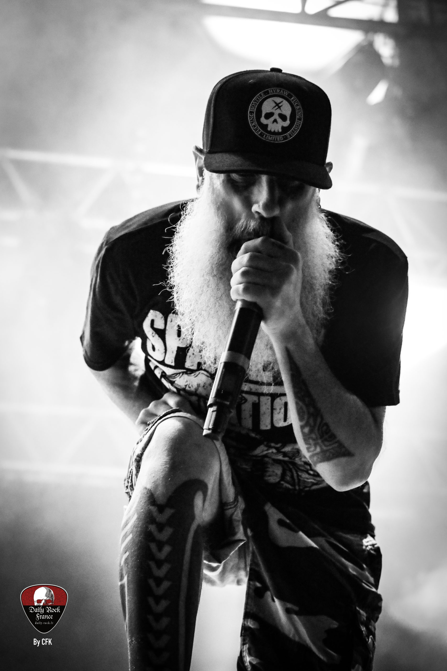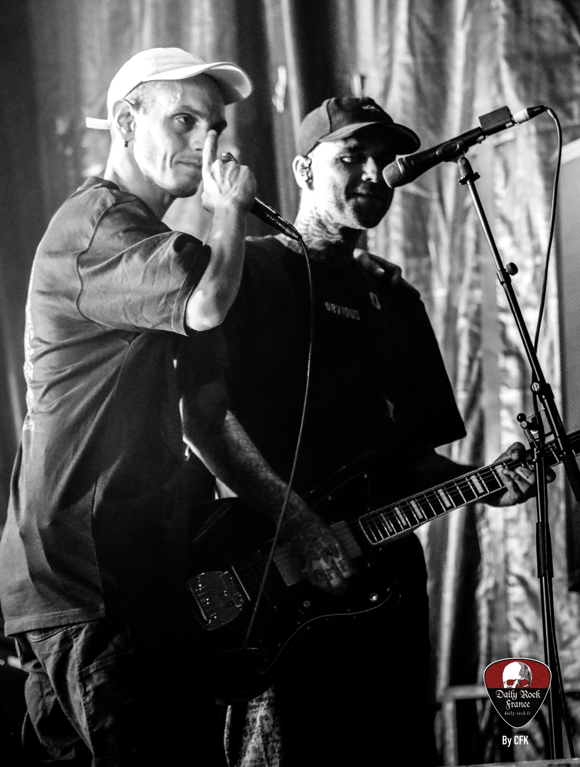 Black Bomb A monte sur scène. On ne présente plus ce groupe iconique, pilier de la scène hardcore/metal française depuis 1995, avec leur style énergique et brutal. Le chanteur remarque des enfants dans la foule et rappelle qu’il est bon d’emmener les enfants en concert pour éveiller leur curiosité. Des cruches et des verres volent dans la foule, ajoutant à l’atmosphère explosive. Le groupe présente leur batteur, Jordan, originaire de la région Moselle, principalement connu pour sa participation au groupe First Rage avant de rejoindre Black Bomb A en 2023. Sur l’avant-dernière chanson, le groupe fait ouvrir la foule en deux pour un Wall of Death, qui se transforme en un bon gros pogo. Black Bomb A clôture la soirée avec la chanson « Mary », sortie en 2004, un classique qui rappelle de bons souvenirs aux fans de longue date. Tout le public se met à chanter « Oh Mary sweet Mary, my Mary oh ohoh ».