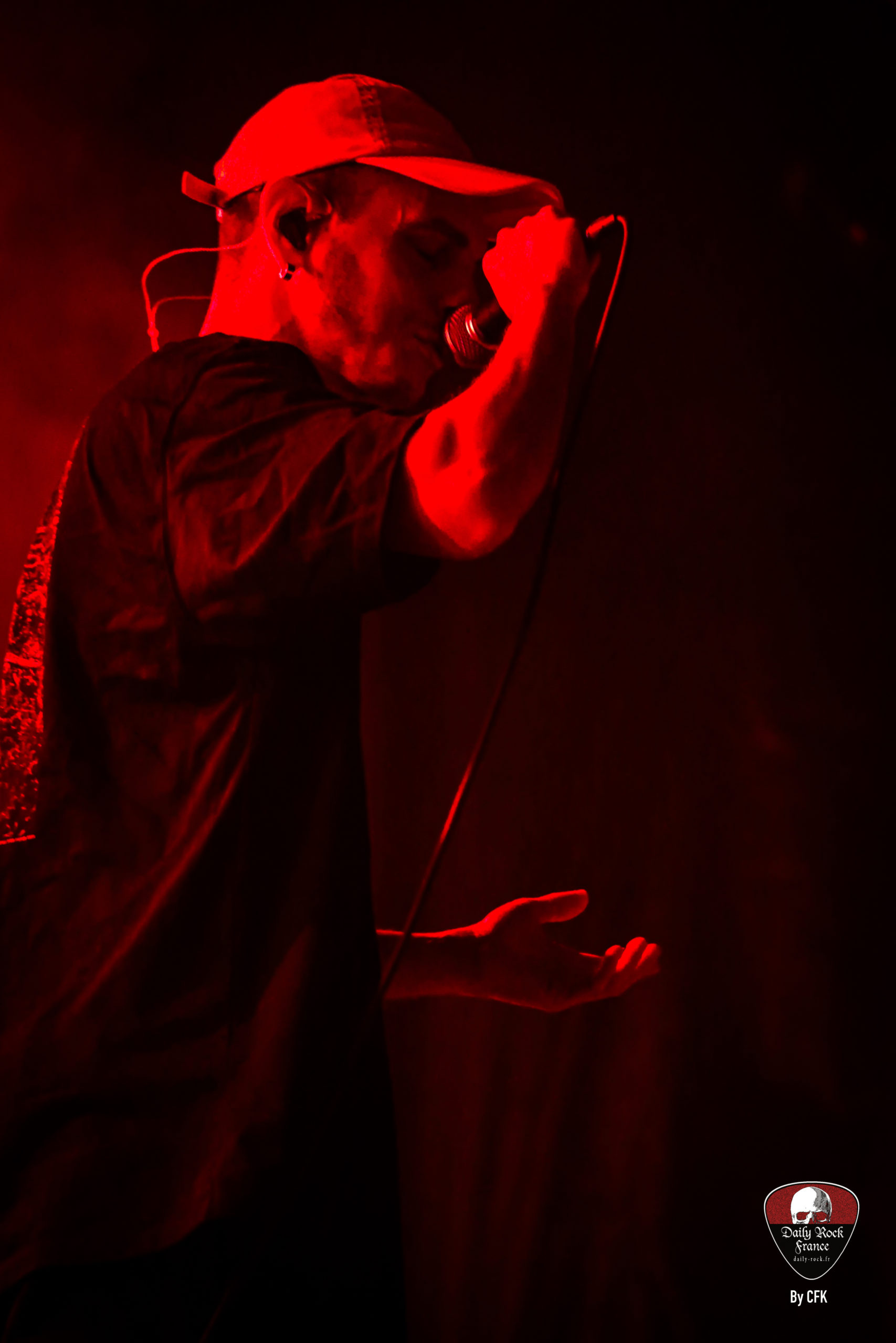 Il est 23h45 lorsque Landmvrks monte sur scène. Ce groupe de metalcore marseillais, formé en 2014, est connu pour son style énergique et mélodique. La foule s’est compressée vers l’avant, impatiente de les voir. Ils entament le concert avec la chanson « Créature ». La journée a été longue pour certains festivaliers, l’un d’eux vomit devant nous, probablement simplement trop excité par le concert de Landmvrks (merci à ceux qui auront la référence). Le groupe incite aux vrais slams de la soirée, déclenchant un circle pit impressionnant. Le chanteur demande qui est fatigué et encourage tout le monde à sauter sur le morceau « Scary ». Il commence la chanson « Suffocate » seul sur scène, accompagné d’une guitare semi-acoustique, avant que le groupe ne revienne pour terminer la chanson ensemble. Ils reviennent aussi à leurs débuts avec le puissant « Hollow » de leur premier album. Leur scénographie est impressionnante avec un « V » lumineux au centre de la scène et des papillons sphinx tête de mort illuminés de chaque côté. Le jeu de lumières est sophistiqué et ajoute une dimension spectaculaire à leur performance. Le groupe termine son concert avec « Selfmade Black Hole », et en guise de surprise, la chanson de Cascada « EverytimeWeTouch » résonne après leur performance. Le public apprécie et chante à tue-tête, boosté par la puissance du concert donné par Landmvrks.