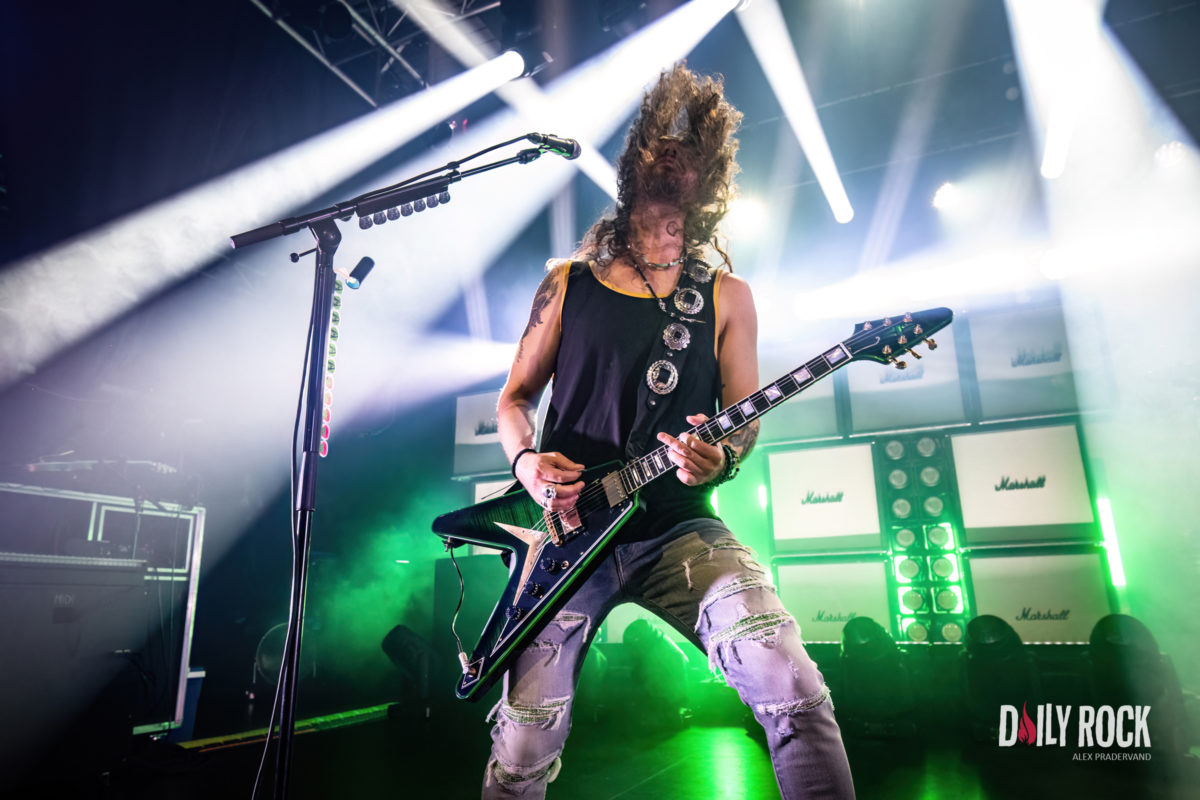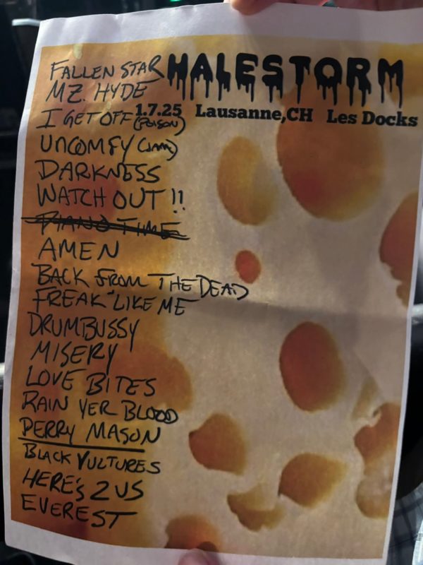 Lors des rappels, traditionnelle communion avec le public sur ‘Here’s to Us’ avec les verres levés, Lzzy tout sourire et le public reprenant en chœur le refrain de cet hymne de Halestorm. Pour clôturer cette soirée dynamique et sympathique, ‘Everest’, titre éponyme de l’album à paraître en août prochain, belle composition qui sort des standards et marque peut-être un virage dans la musique du groupe. A vérifier lors de la tournée automnale ‘The nEVEREST Tour’ qui passera notamment par Zurich.