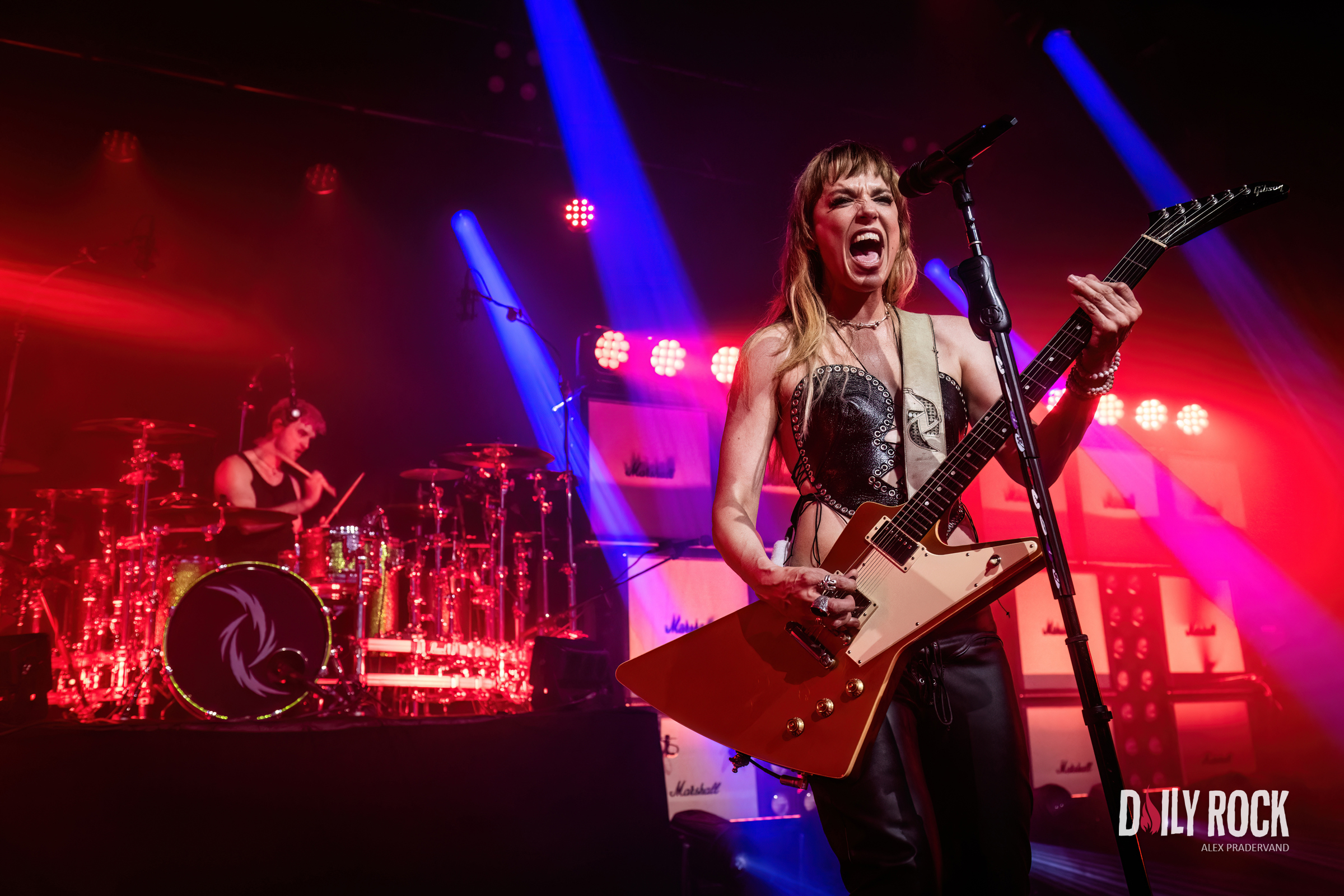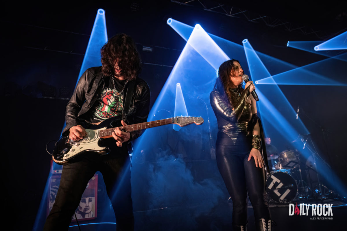 Aux Docks, on aura particulièrement apprécié ‘Kick Out the Jams’, cover incandescente de MC5 qui a ouvert le set, le fiévreux ‘1984’ extrait du dernier album, tout comme l’élégant ‘Running for a Dream’. ‘Wanted Man’ a tout pour devenir un classique tandis que l’on se prend en pleine face ‘Hard Times’ d’une puissance folle. Delila est vêtue d’une combinaison moulante sombre, super héroïne rock au charisme irrésistible. Elle danse, se déhanche, prend la pose, arpente la scène telle un félin, se penche sur Edgey qui repart de plus belle et fait des bonds à la Pete Townsend en plein riff. Dans la touffeur des Docks, la température a encore pris quelques degrés pour le plus grand bonheur des fans.