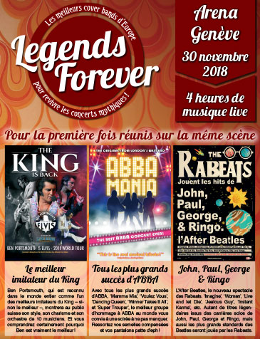 Rendez-vous le 30 novembre 2018 à l’Arena de Genève. Plus d’infos sur www.livemusic.ch/concert/legends-forever/
