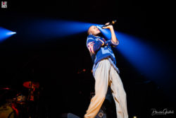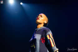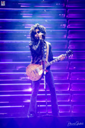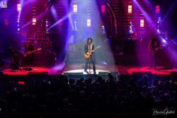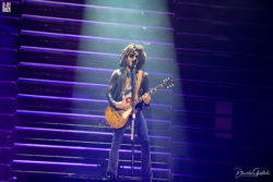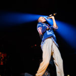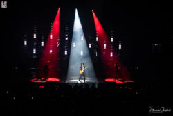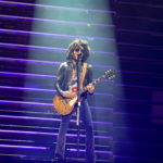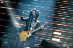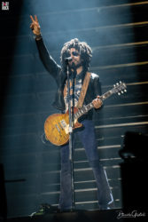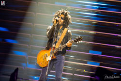 A quelques minutes du concert, le public ne tient plus en place. A peine la musique d’ambiance fait une pause que les cris foisonnent dans l’Arena. Mais à l’instant où Lenny Kravitz fait son apparition, éclairé d’un seul spot, en haut d’un escalier, c’est l’explosion. La salle ne se fait pas prier pour danser et chanter à tue-tête, le sourire jusqu’aux oreilles. Sur scène, Lenny Kravitz fait le show, et il sait exactement quoi faire pour obtenir les louanges des fans : petit déhanché qui fait ressortir son sex appeal, montée du volume vocal pour la virilité, déchaussage de lunettes de soleil pour que l’on puisse voir ses yeux et vérifier qu’il est bien humain. Lenny Kravitz se nourrit de ces acclamations mais, si cela peut paraître prétentieux ou égocentrique, il sait aussi rendre l’appareil. Les clins d’œil et autres sourire aux fans des premiers rangs ne manquent pas et il a aussi ravi ceux des gradins en venant à leur rencontre. Et il n’a pas fait que passer ! Il a pris son temps, serrant les mains qu’on lui tendait sans hésiter, se laissant accompagner d’un enfant sur un bout de sa traversée, échangeant quelques mots avec ceux qui le voulaient. Le showman prolongera même l’expérience au fond de la fosse, offrant ainsi à tout le monde la chance de pouvoir observer ses pas de danse de près. Enchaînant tube sur tube pendant près de 2h30, Lenny Kravitz a une fois de plus montré toute sa force artistique et à fait vibrer les planches et les cœurs de l’Arena.