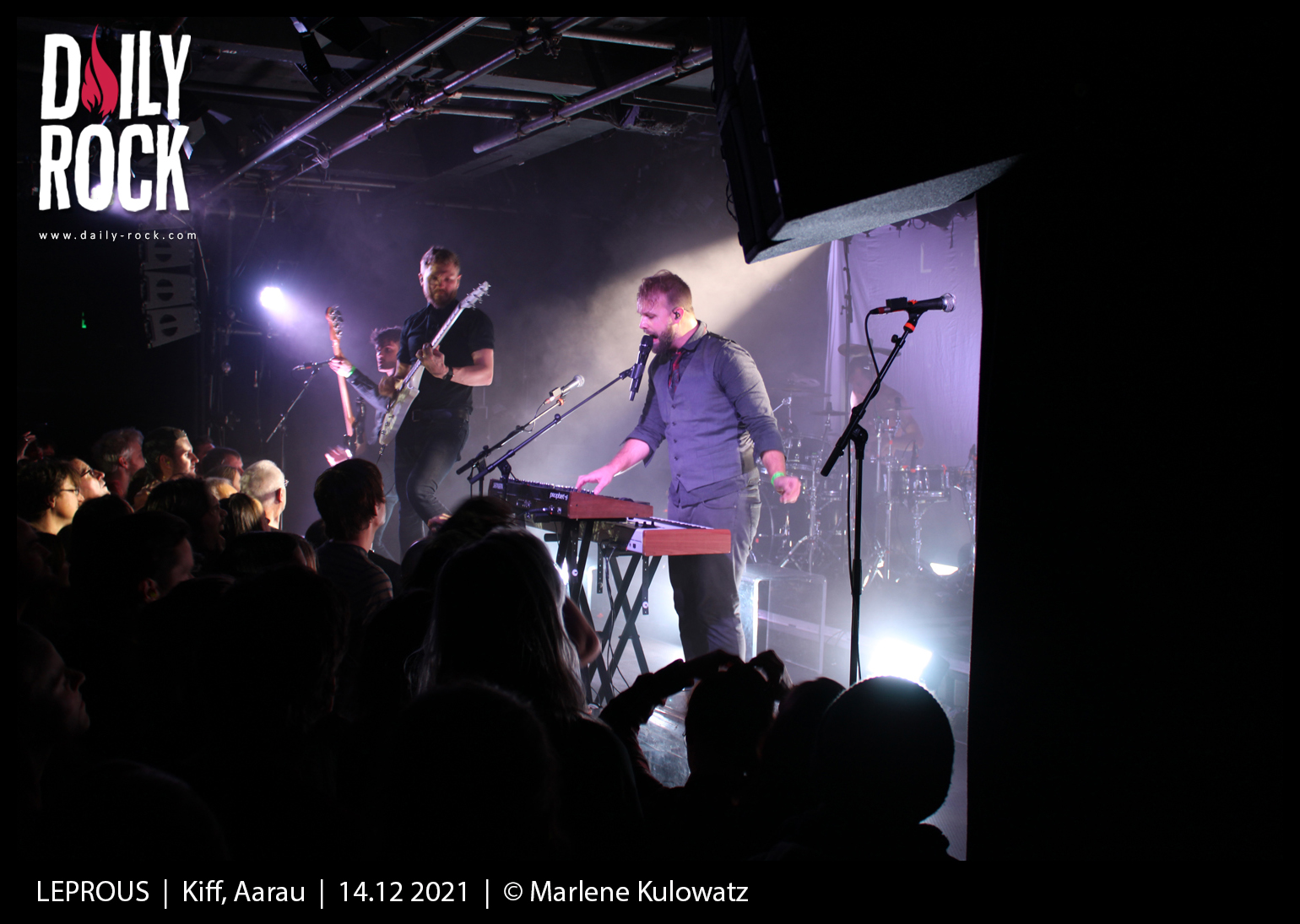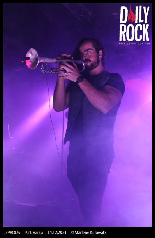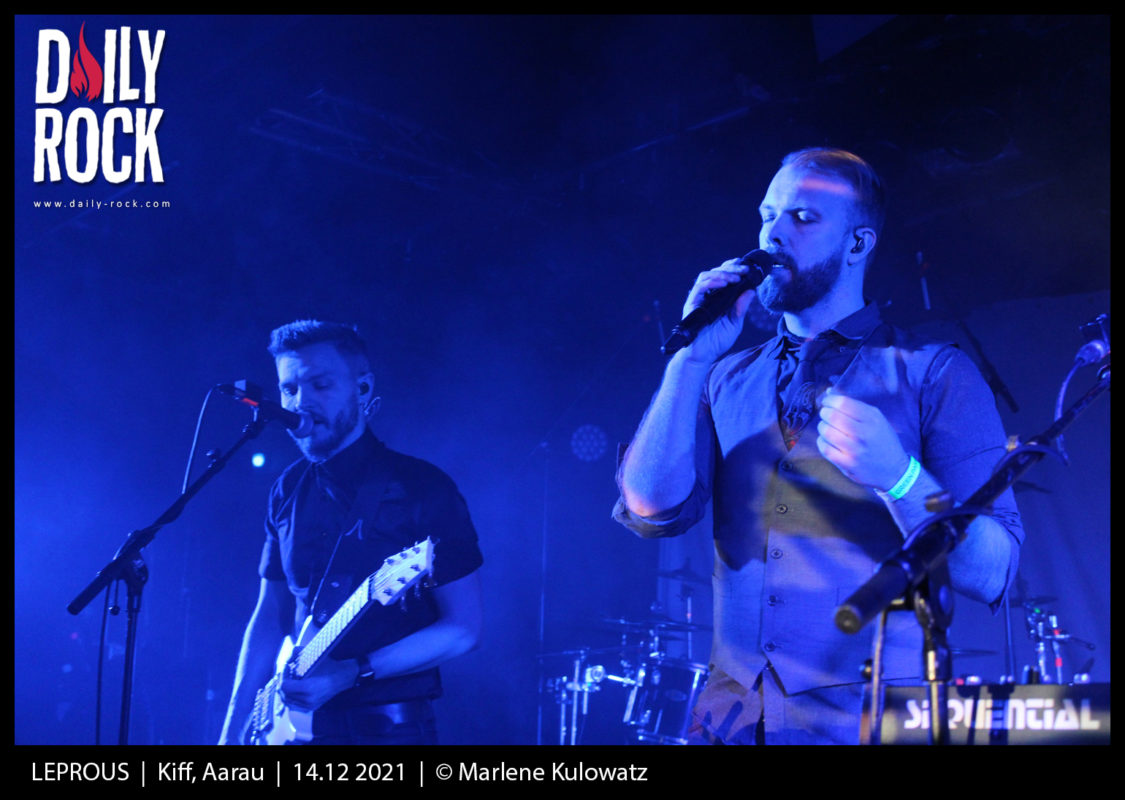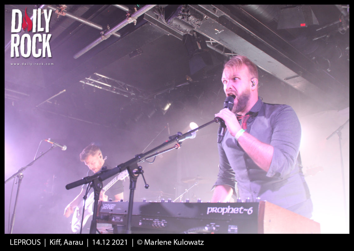 La vue de l’affluence serrée qui a fait le déplacement donne chaud au coeur. Quelques masques sanitaires ici et là nous rappellent la morosité des temps que nous traversons, sans que ça ne parvienne à entacher l’ambiance, dont les fondations sont posées avec un bel enthousiasme par le duo de Norvégiens Aiming for Enrike. « Un clin d’oeil à l’inénarrable organisateur des soirées metal du Nouveau Monde? » se turlupineront les Fribourgeois un instant, avant de se raviser devant la dubitabilité de la référence. N’empêche, le parallèle invraisemblable aurait vu sa pertinence prolongée par la bonne humeur communicative du groupe instrumental, qui doit malheureusement faire face à un salle un peu morne parce qu’elle est là pour Leprous hein, faut pas croire. Fringués comme deux gendres idéaux, les Norvégiens élargissent leur base guitare-batteries en jouant avec une armada de pédales qui occupe la moitié de la scène pour produire effets et loops en tout genre, piochant allègrement dans un éventail de genres qui ratisse du djent au rock en passant par la new wave et le jazz. Ils réaffirment leur inventivité à chaque chanson dans l’espoir de récolter l’adhésion d’une audience hélas un peu plus occupée à commenter les dernières mesures sanitaires qu’à suivre ce qui se passe sur scène. Dommage, parce que le duo fait office de première partie idéale, avec une immédiateté qui ne se trouve pas dans le mimétisme.