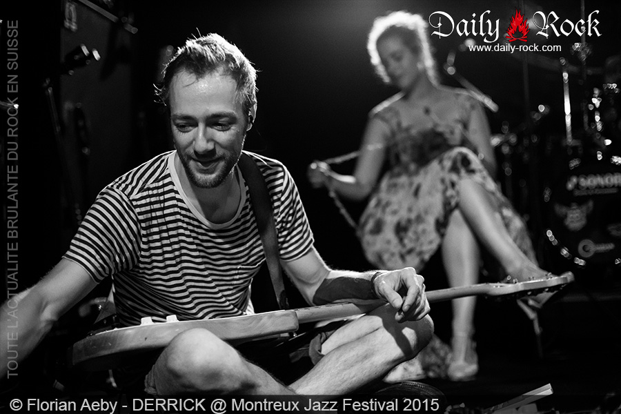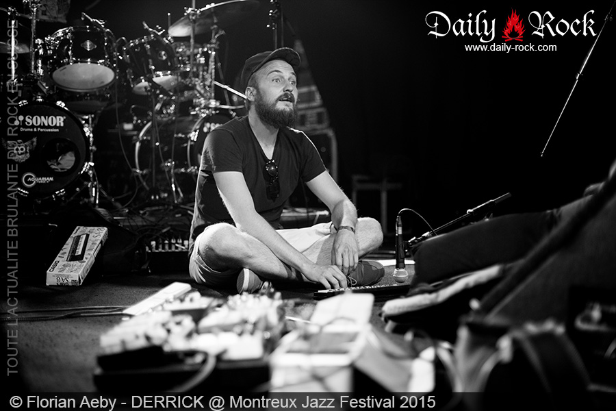 DERRICK est une sorte d’OVNI musical surpuissant, acide, grinçant même, bref inqualifiable. Le groupe se compose de trois potes de longue date: Guillaume Ducommun à la guitare/basse, Guido Wyss à la batterie et Benjamin Plüss à la voix. DERRICK est sans doute le seul groupe au monde à pouvoir se targuer de proposer à la fois un set qui chie à mort, tout en offrant des saucisses de veau grillées par un doigt d’honneur géant et une bestiole étrange à son public. Mais cela ne s’arrête pas là! Pour cette date spéciale, une tricoteuse partageait, en rythme, la scène avec eux. Et pour terminer en apothéose, un interlude super choue au Casio nous a fait vibrer jusqu’au bout sur du Richard Clayderman, reprenant même le célèbre générique de la série allemande du même nom.