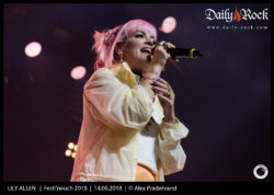 Pour la première soirée de son édition 2018, Festi’neuch a reçu le joli coup de convaincre Lily Allen de se produire en live en exclusivité nationale, après une absence de 9 ans suite à son dernier passage au Montreux Jazz Festival.