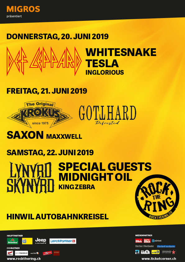 Du 20 au 22 juin 2019, la petite ville d’Hinwil accueillera des légendes du rock au bord de son autoroute. Comme les années précédentes, le festival met un point d’honneur à présenter des groupes nationaux et internationaux. Que vous soyez amateur de soft rock, de hard rock ou de rock suisse, il y a quelque chose pour tous les gouts !