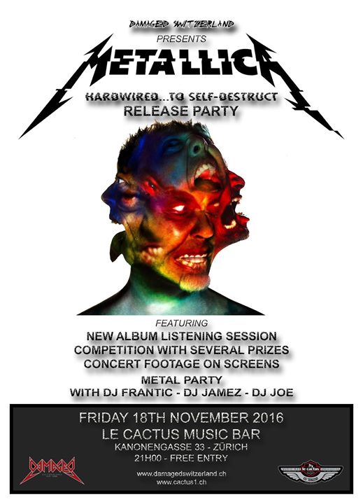 Damaged Switzerland, le fan club officiel de Metallica, organise ce vendredi 18 novembre une listening party à l’occasion de la sortie du nouvel album du groupe culte intitulé ‘Hardwired…to Self-Destruct‘.