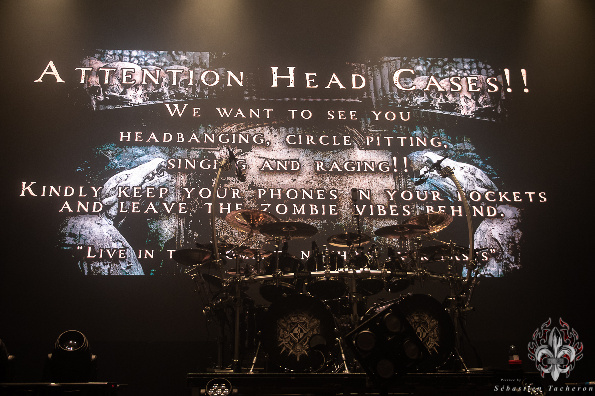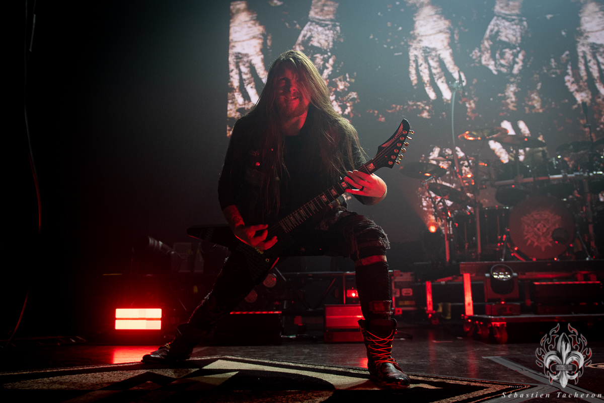 L’arrivée de Machine Head se fait dans une ambiance attisée par les groupes précédents. Le public est fébrile et n’hésite pas à chanter en chœur chaque parole du premier morceau, Imperium, portée par la puissance de la batterie et les mélodies tranchantes des guitares. À Locust, l’énergie atteint son paroxysme. Robb Flynn, fidèle à lui-même, déclenche un circle pit d’un simple geste du doigt, comme s’il était doté de pouvoirs surnaturels. Puis, d’un mouvement vertical de la main, il crée une ouverture au centre du parterre avant que les fans ne se jettent les uns sur les autres dans un mur de la mort à la Slayer, version MTelus. C’était fascinant. Puis, avec Bonescraper, extrait de leur nouvel album Unatoned, la foule est plongée dans une transe collective : on se sent physiquement happé par la musique, emporté dans un zombie headbanging frénétique. Le visuel, rappelant les derniers vidéoclips de la formation californienne, ajoute une dimension immersive qui ravit autant les nouveaux venus que les fans de longue date. Unanimement, les attentes sont surpassées. Pour la finale, ou presque, Atomic s’ouvre sur la projection d’un cimetière : pierres tombales, éclairage lugubre, ambiance résolument métal. Visuellement marquant, ce morceau ajoute une touche sombre et solennelle à une soirée déjà du tonnerre. C’était réussi.