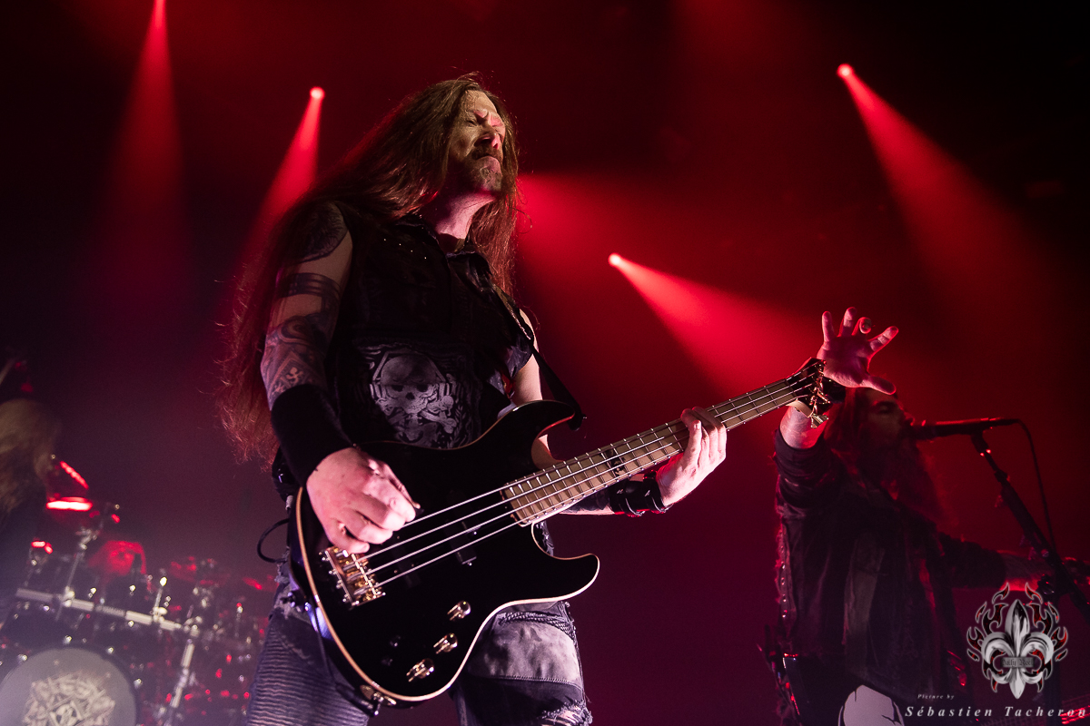 La scène est simple, mais efficace. Des banderoles textiles à l’effigie du groupe encadrent la batterie, positionnée au centre, qui crée une belle profondeur. La prestation s’ouvre sur un prélude mystérieux, instaurant immédiatement l’atmosphère gothique propre à Lacuna Coil. Leur force réside dans leur présence scénique : costumes, maquillage, postures, tout est minutieusement travaillé. Aussi, le public est régulièrement interpellé en français – « Bonsoir mes amis ! » – ce qui crée une belle proximité. Sur Oxygen, les cellulaires s’illuminent, soutenant l’envie de capturer ce moment intense. Avec Never Dawn, un succès tiré de leur dernier album Sleepness Empire, le public explose : cris, sauts et même des « Olé, olé, olé ! » bien sentis, certains arborant fièrement leur chandail des Canadiens de Montréal pour l’occasion.