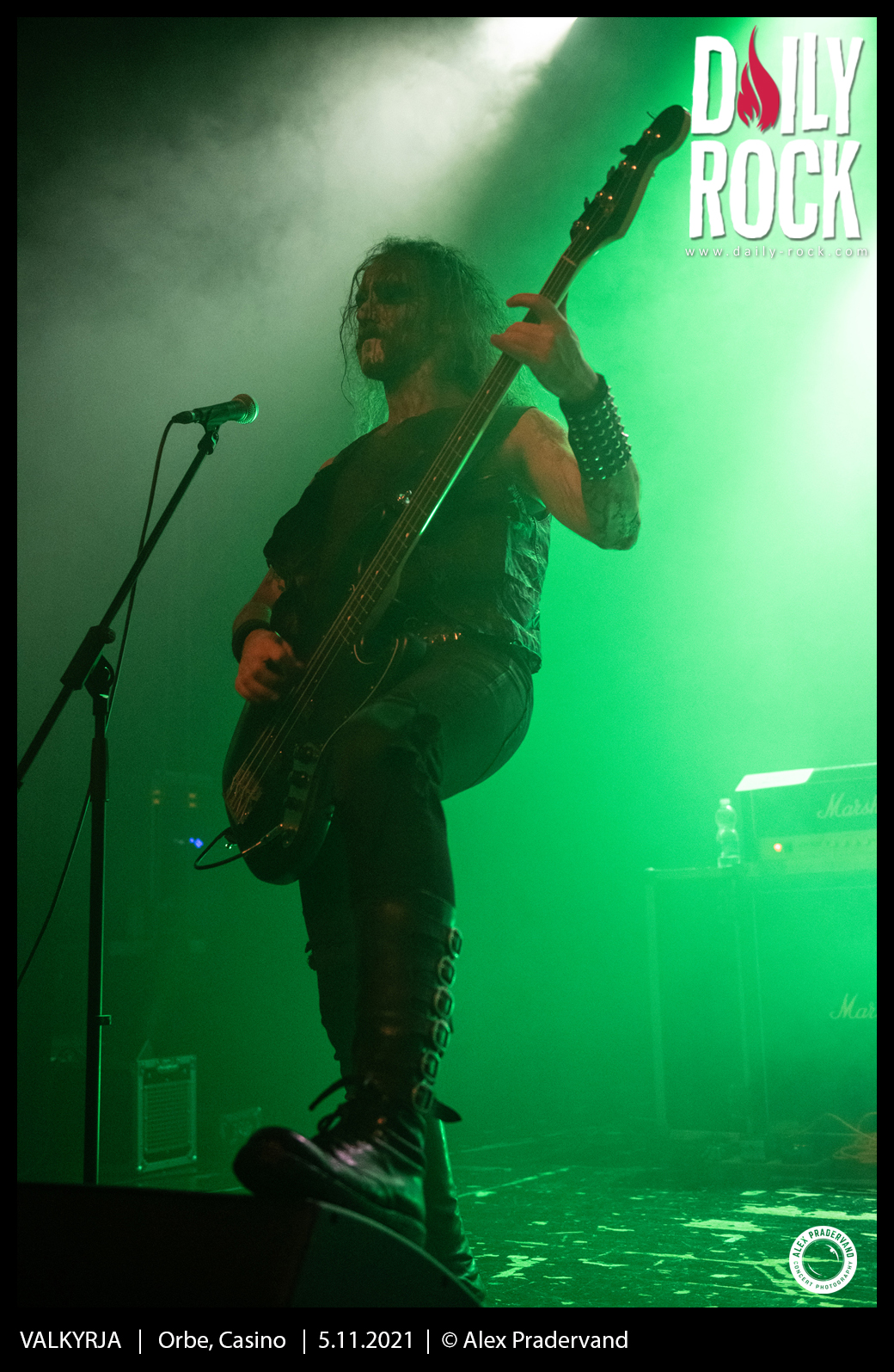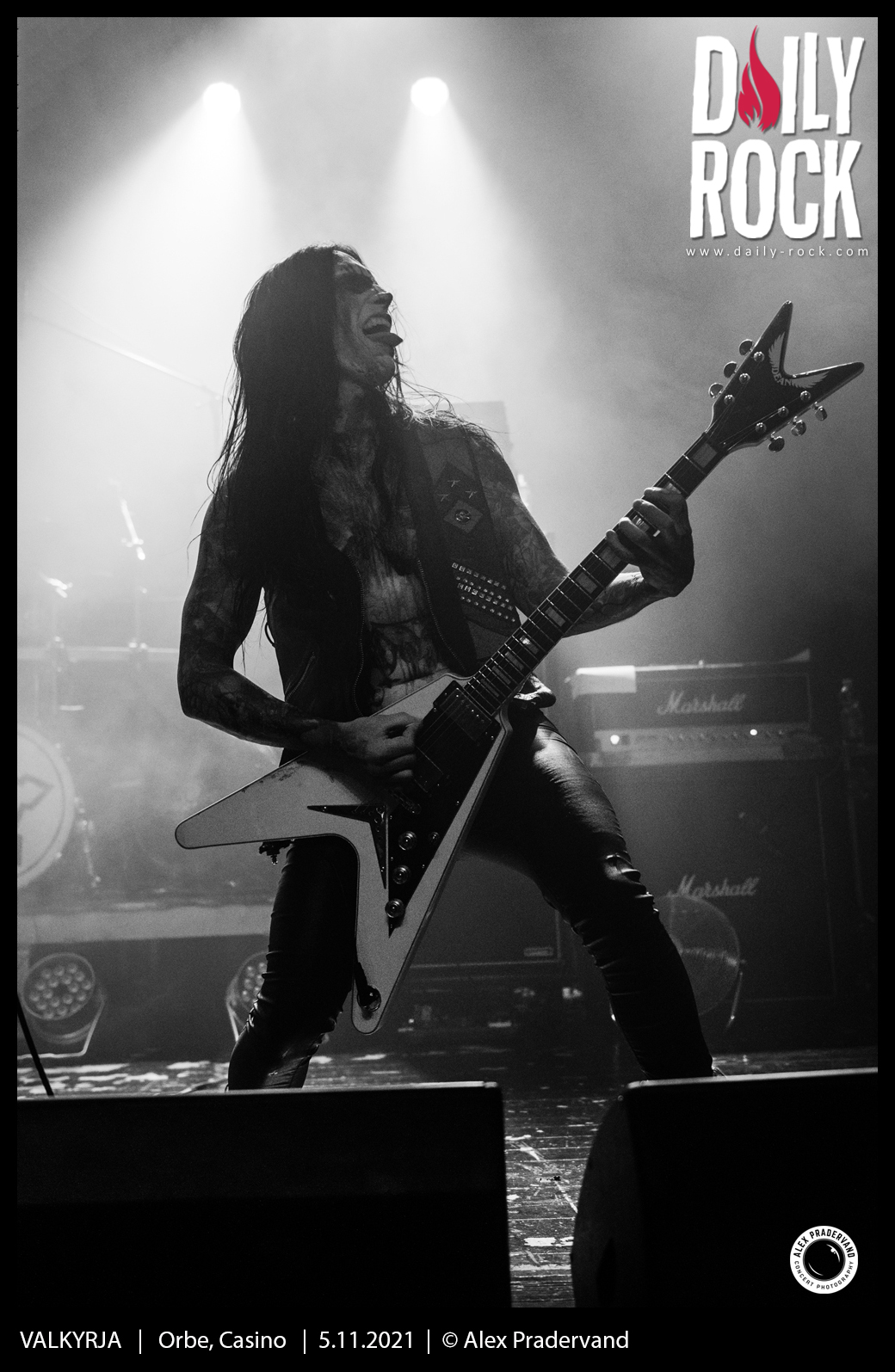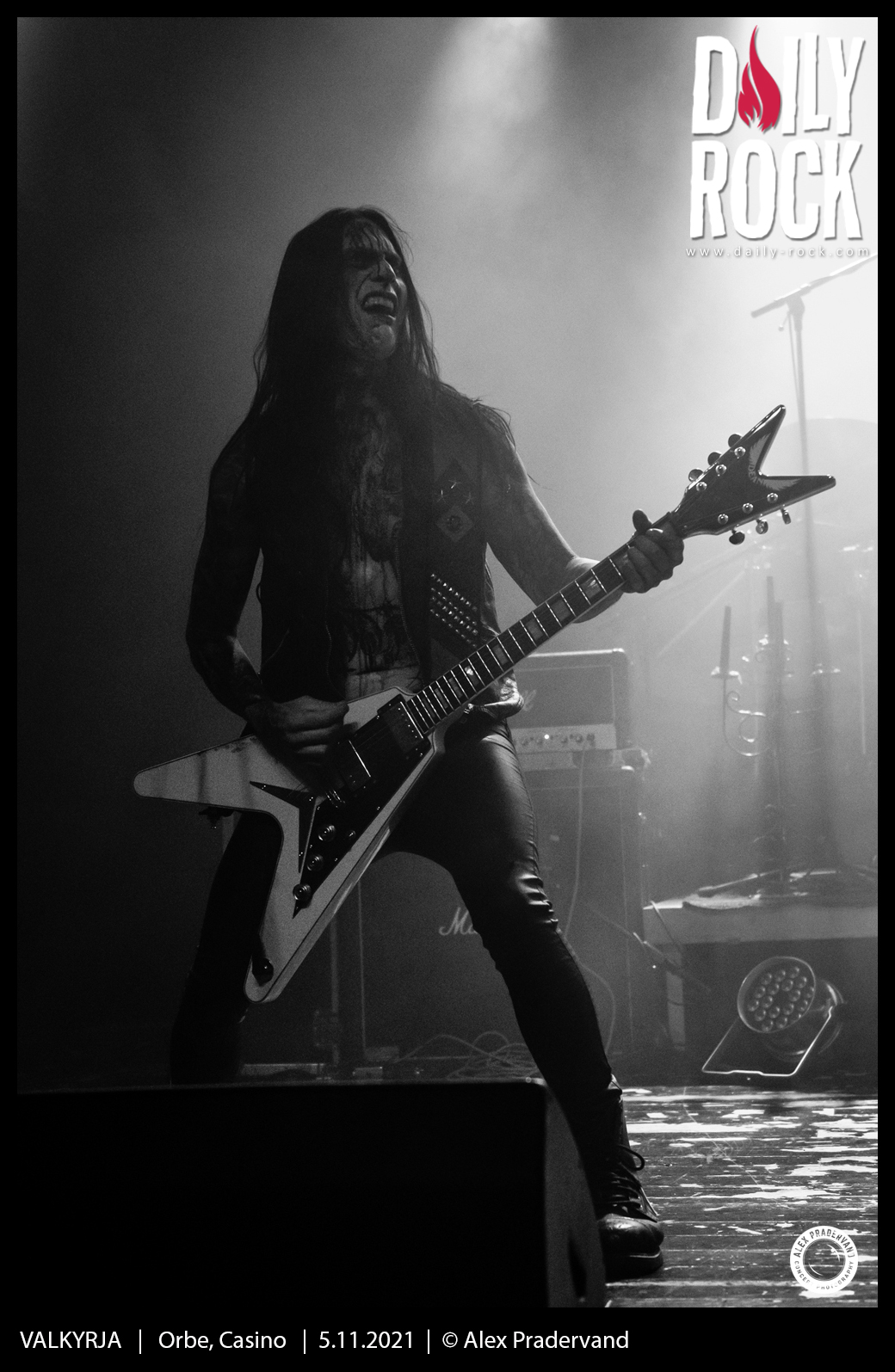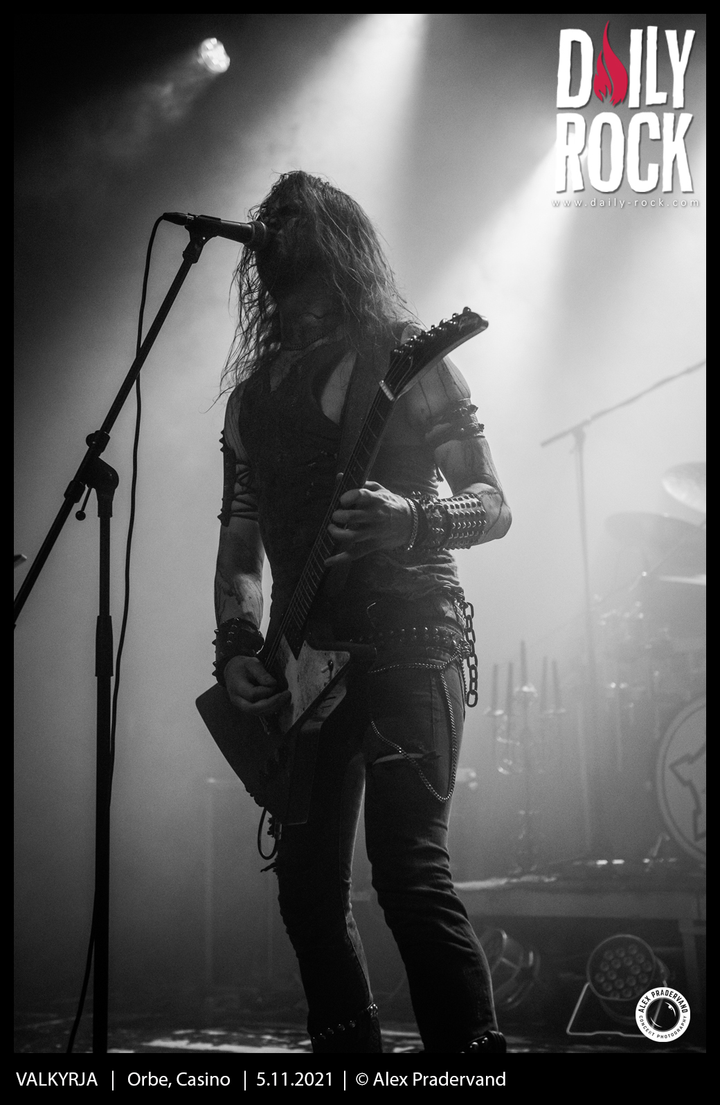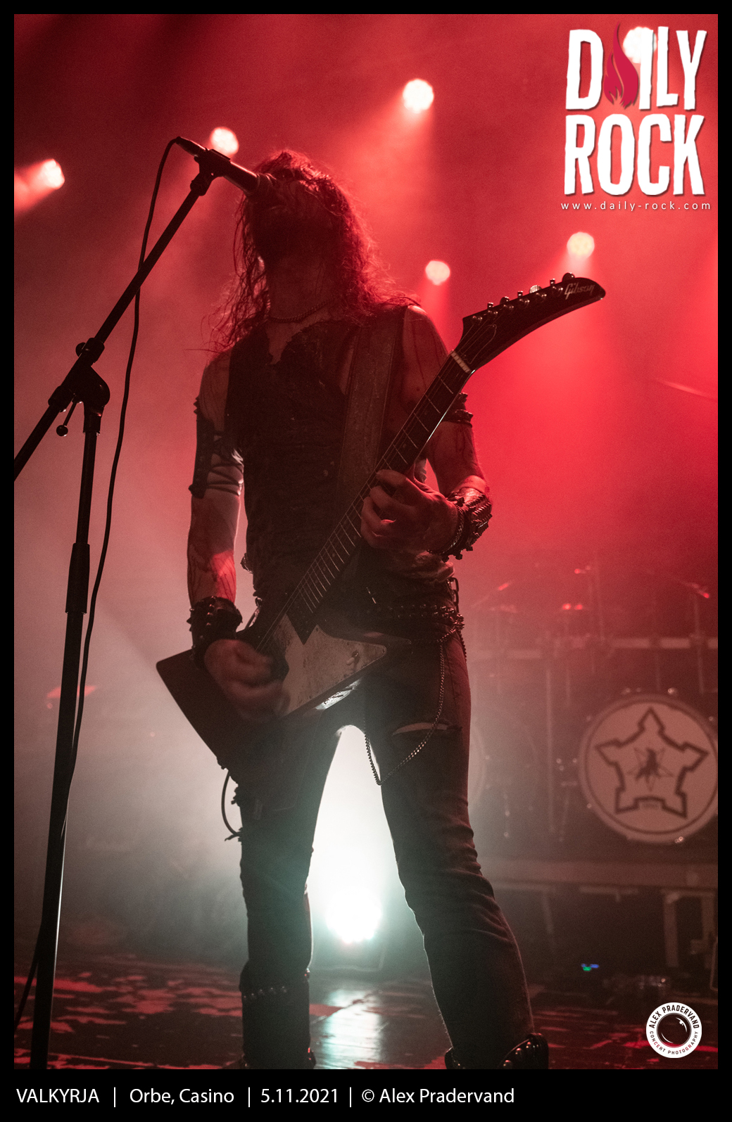 Valkyrja, ce sont cinq suédois qui tournent depuis une décennie, mais c’est la première fois que je les vois en concert. Musicalement, c’est pas mal du tout avec des chansons axées sur de nombreux riffs assez thrash dans l’esprit. Le chanteur guitariste gère pas mal car c’est toujours costaud d’assurer les deux parties en même temps. Le second guitariste, absolument intenable, s’en donne à cœur joie sur tous les morceaux. Dommage que l’absence de lumière de face empêche de faire des photos convenables car il y avait de quoi faire de belles images. Sans être révolutionnaire, le concert est plaisant et semble apprécié du public, de plus en plus nombreux dans la salle du Casino.