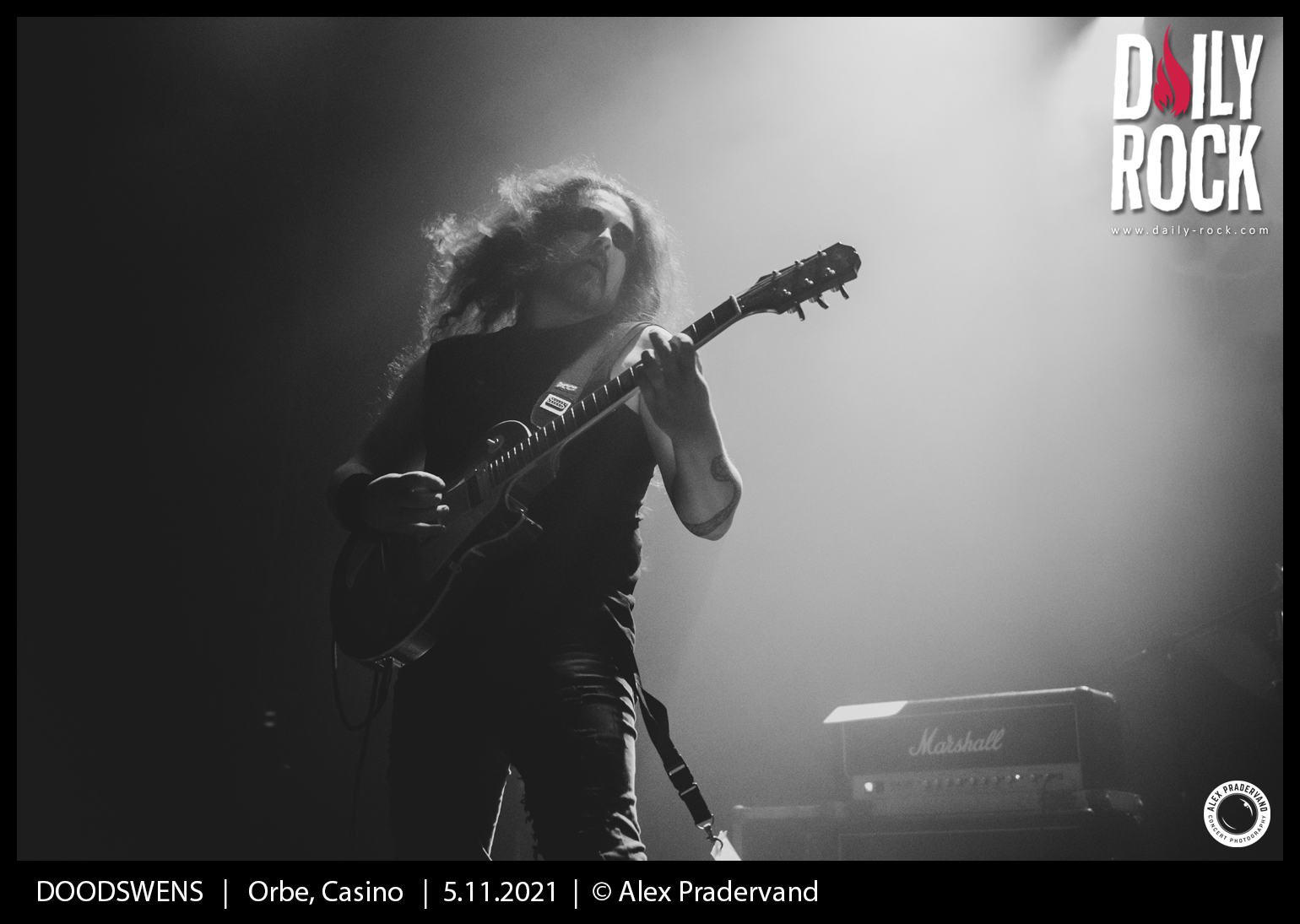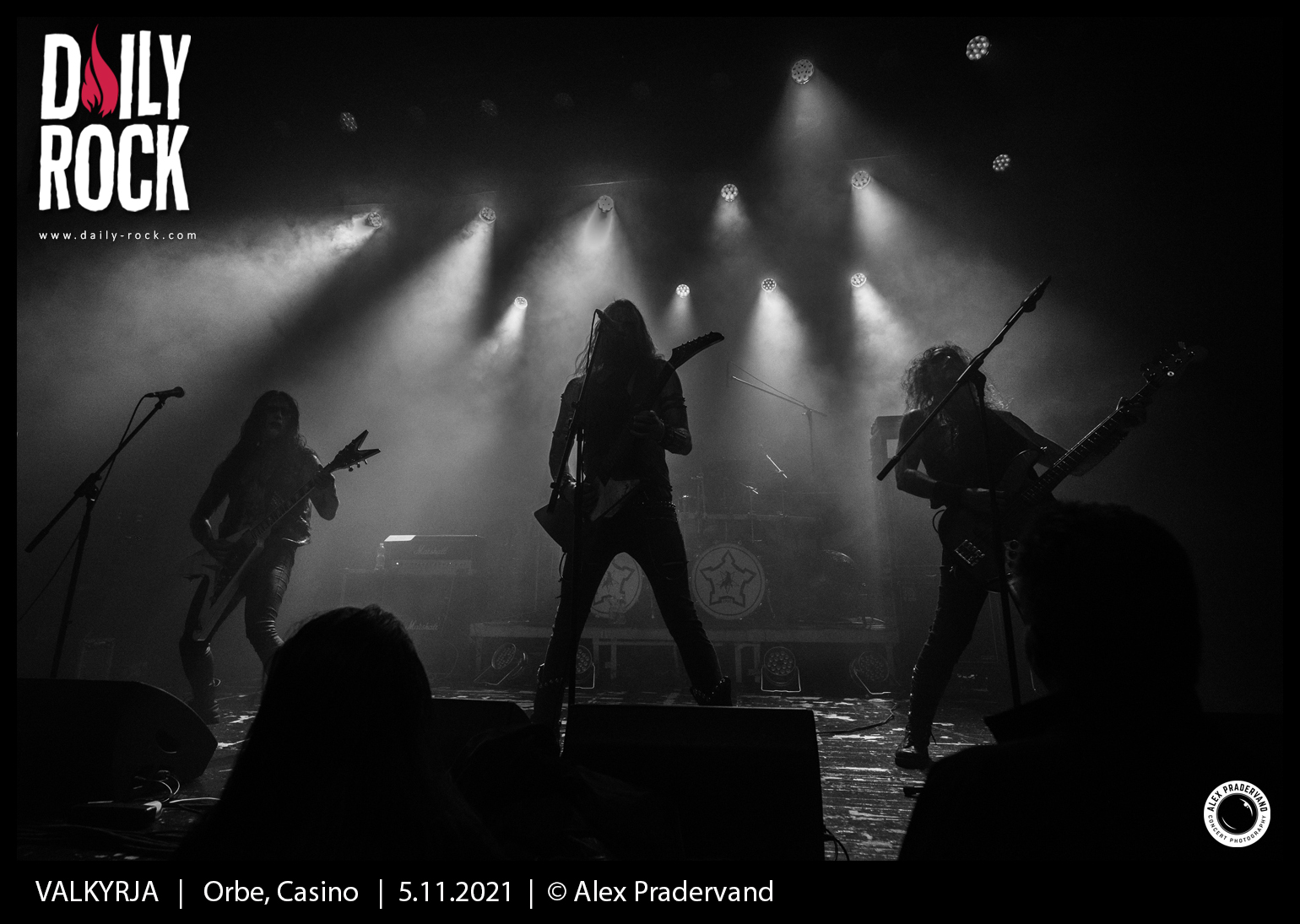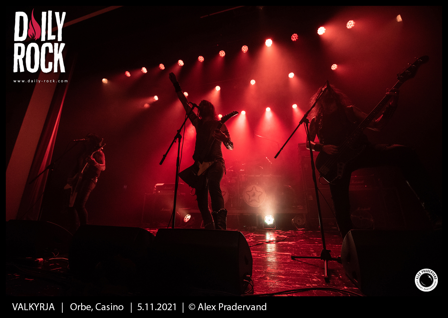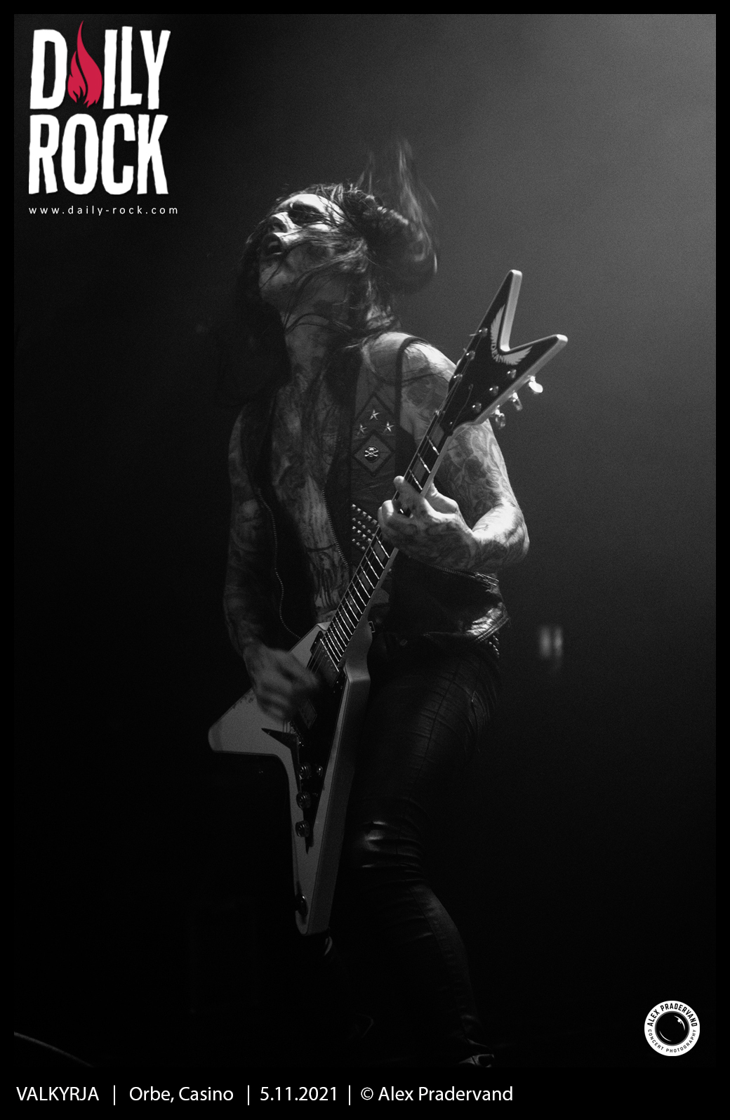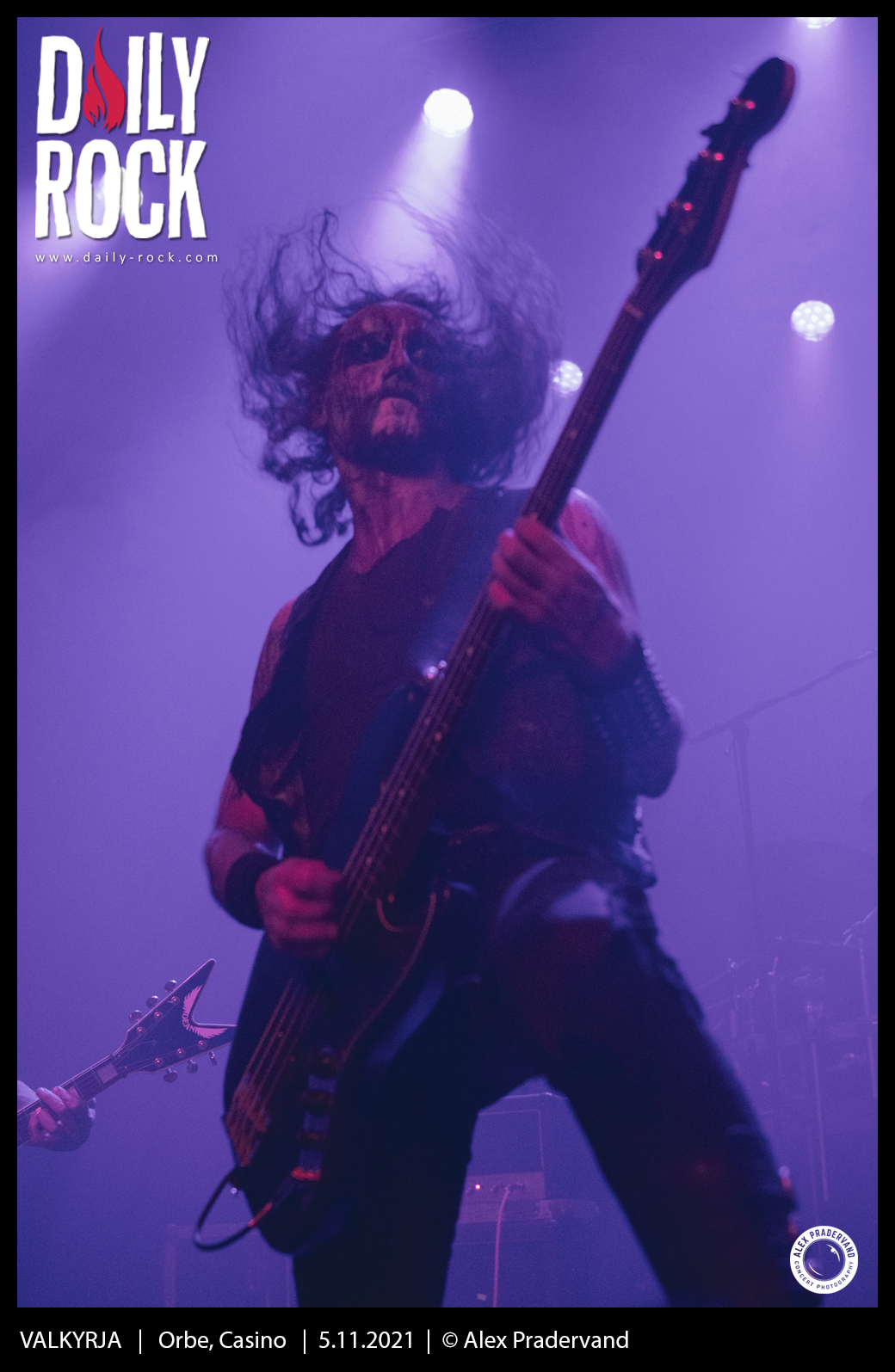 Valkyrja, ce sont cinq suédois qui tournent depuis une décennie, mais c’est la première fois que je les vois en concert. Musicalement, c’est pas mal du tout avec des chansons axées sur de nombreux riffs assez thrash dans l’esprit. Le chanteur guitariste gère pas mal car c’est toujours costaud d’assurer les deux parties en même temps. Le second guitariste, absolument intenable, s’en donne à cœur joie sur tous les morceaux. Dommage que l’absence de lumière de face empêche de faire des photos convenables car il y avait de quoi faire de belles images. Sans être révolutionnaire, le concert est plaisant et semble apprécié du public, de plus en plus nombreux dans la salle du Casino.