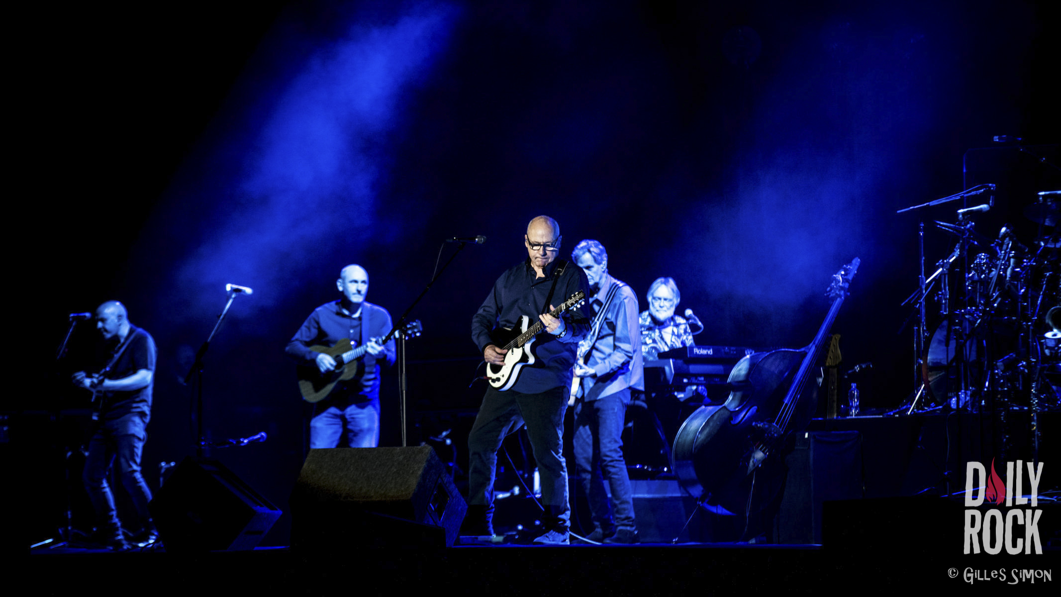 Ainsi donc, pour cette dernière tournée passant par la en Suisse, les spectateurs ont eu droit à une joli panorama de la carrière du chanteur guitariste : un tiers de reprises de Dire Straits et deux tiers de titres solo, le tout joués par Mark Knopfler et dix (!) musiciens d’accompagnement. Honnêtement, se mettre à onze pour faire aussi peu de bruit, c’est une prouesse : Mark Knopfler fait dans la dentelle. Un concert délicat et fin.