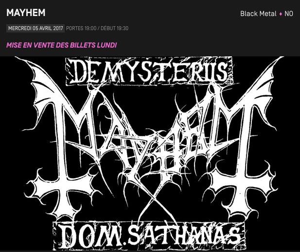 ‘De Mysteriis Dom Sathanas‘, largement considéré comme l’un des albums le plus influents de black metal, est sorti en 1984. C’est cet album que Mayhem jouera pour cette tournée. Retrouvez-les sur scène le mercredi 5 avril aux Docks !