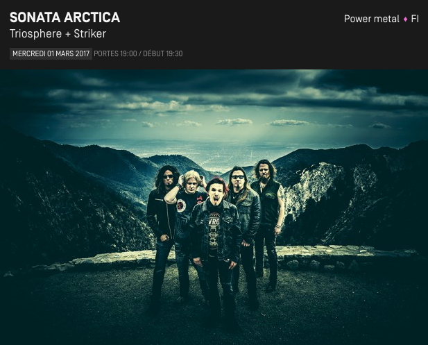 Sonata Arctica, depuis plus de dix ans chez Nuclear Blast, a sorti ‘The Ninth Hour‘, cette année. Après avoir joué au Z7 de Pratteln il y a quelques semaines, les finlandais seront de retour en Suisse, accompagnés de Triosphère et Stricker en premières partie, le mercredi 1 mars aux Docks de Lausanne.
