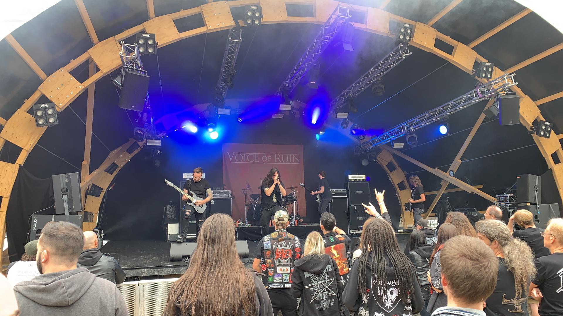 Voice of Ruin, c’est un de ces groupes suisses qu’il faut absolument garder sur votre radar si vous ne le faites pas encore. Avec leur sortie prochaine de leur troisième album ‘Acheron’, c’était pour moi enfin l’occasion de vivre le groupe vaudois en chair et en os. Et clairement, cette attente était trop longue. Même avec leur slot pas super avantageux au milieu de l’après-midi, le public était au rendez-vous et s’est très vite laissé emporter. Voice of Ruin ont tout donné, et on en est bien contents ! Nous avons manqué la fin de set pour une interview, mais nous tâcherons de nous rattraper aussi tôt que possible.