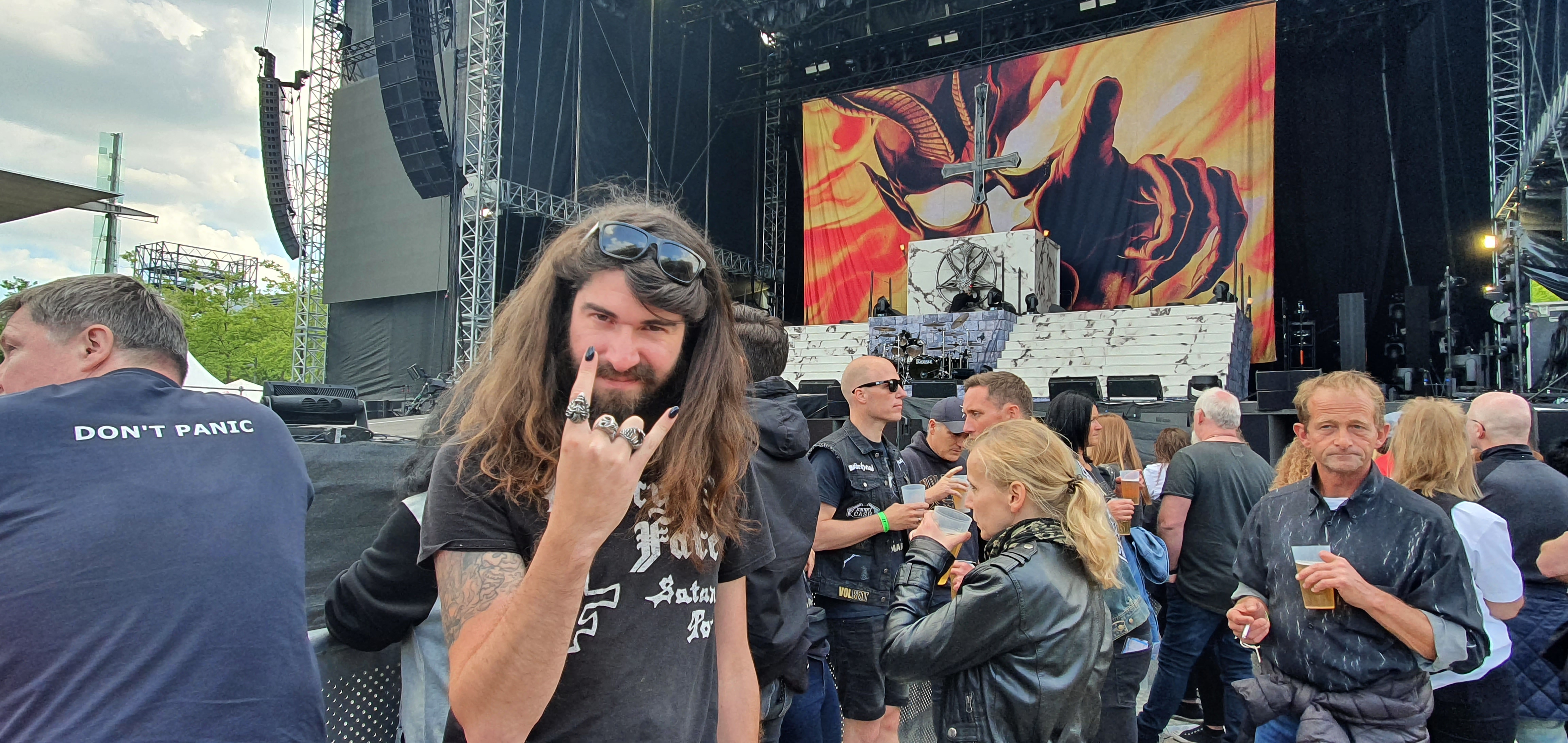La file d’attente est géante, le soleil brille fortement sur nous. On est 2-3 personnes avec des t-shirts de Mercyful Fate, le reste des gens sont tout habillés avec des t-shirts de Volbeat. Si bien c’est un concert de Volbeat, Mercyful Fate est là pour faire la première partie. Étant le fan n°1 de Mercyful Fate, j’ai réussi à être devant la scène, avec les mains sur la barrière, juste en face de la scène la plus imposante du monde.