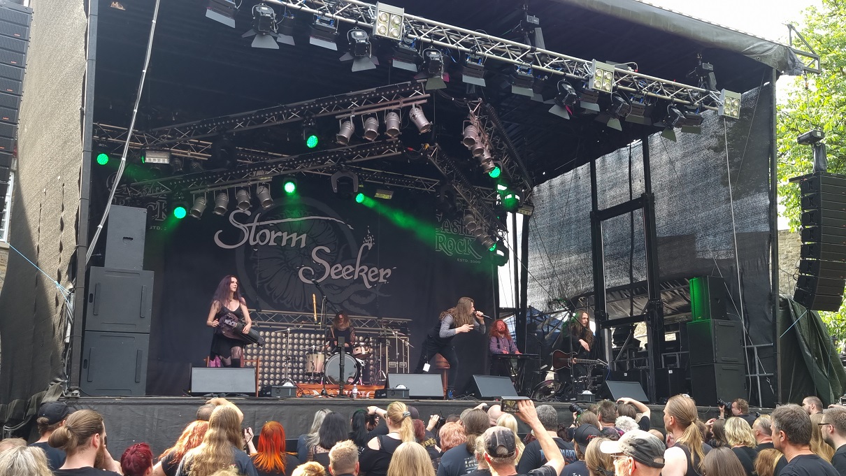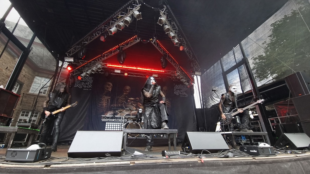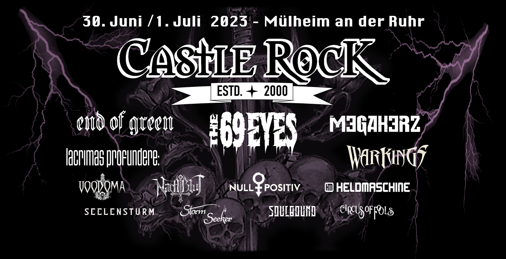 Pour ce cinquième festival, nous nous sommes rendus dans le château Broich à Mulheim-sur-la-Rhur. Cet édifice du IXe siècle est un lieu idéal pour accueillir un évènement tel que le Castle Rock, festival axé sur le metal gothique et indus. C’est d’ailleurs le propriétaire du château lui-même, en tant que passionné du genre, qui a eu l’idée de créer ce festival en 2000. On se retrouve donc cette année pour la 23e édition d’un évènement qui malgré son âge a su garder son caractère intimiste et familial avec une jauge fixée à 1000 visiteurs.