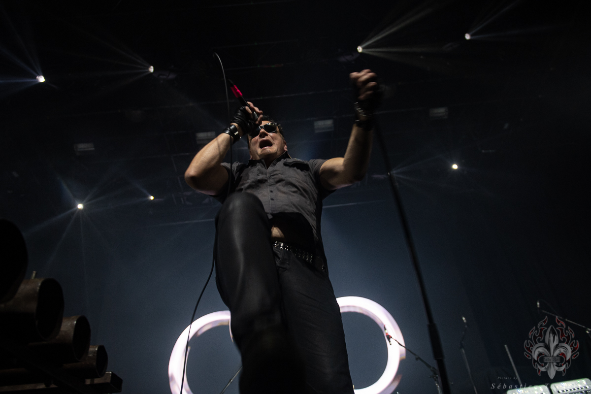 La soirée débute avec Die Krupps, que j’ai découvert en 1993 grâce à leur album de reprises de Metallica, dans lequel ils avaient revisité neuf titres des Four Horsemen à leur manière. Quand j’ai vu qu’ils assuraient la première partie de Ministry, cela justifiait à lui seul ma présence.