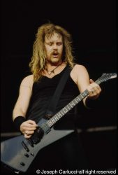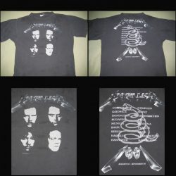 Résultat, quand Metallica commença à jouer, on avait paumé Ethylic et son pote partis pisser. On était au trentième rang environ, en plus des deux fosses de sécu et la fosse à handicapojournaliste… Autant dire que ça faisait loin pour voir quelque chose. Avec mon pote Virgule on trépignait, on sautait sur place. Bordel, on essayait tant bien que mal de voir quelque chose ! La libération viendra de deux petites sottes situées devant nous, dont l’une cria à sa copine : « C’est quoi cette merde ? Elle est pas sur le « Black Album » celle-là ? » A ses mots, un seul regard entre Virgule et moi a suffi pour qu’on se comprenne. On était déjà bouillonnant, mais là… On ne pouvait certainement pas rester derrière des gens ne méritant même pas d’être présents ! En synchro et sans un mot, on s’est mis à foncer vers l’avant. Grâce à ce magnifique forcing et en pogotant, nous nous retrouvâmes au troisième ou quatrième rang ! Davantage plus près, ça aurait été impossible, la foule était trop compacte et les mecs trop balaises pour oser les bousculer. Si je me souviens bien je crois que c’est sur la chanson « One« , au moment où le morceau s’énerve, que le grand costaud qui était devant moi s’est retourné. Je me suis dit : « merde je vais en prendre une. » Je pouvais le comprendre : ça devait être bien chiant d’avoir un petit excité comme moi qui te bourrine le dos en hurlant à plein poumons. Ma crainte se dissipa à son grand sourire tandis qu’il joignit ses doigts afin de faire un marchepied tout en déclarant avec une mimique collée au visage « Tu veux faire le malin ? Vas-y ! Je vais t’aider ! » Pas besoin de me le dire deux fois ! Je pousse un peu pour prendre du recul… Et hop ! Le gars me catapulte sur la tête des deux premiers rangs. Je me retrouve quelques instants assis sur leurs mains, face à Hetfield ! Il me remarque un peu alors qu’on me balance dans la fosse des sécus. Ils peuvent m’éjecter du concert, je m’en fous ! Hetfield m’a remarqué deux secondes. Au final, Ils m’ont juste raccompagné sur le côté avec le sourire. Par contre, j’ai bien du mettre une vingtaine de minutes pour rejoindre mon pote au centre. Metallica joua toutes ses meilleures chansons pour notre plus grand plaisir. Entre leur prestation et l’ambiance, je ne garde vraiment que de bons souvenirs de ce concert.