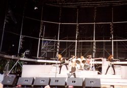 Une fois leur show achevé, on a fait demi-tour pour se ravitailler car il faisait soif ! Grave erreur car très vite après Mötley, une foule compacte et dense se rassembla devant la scène. Les choses sérieuses allaient commencer ! De plus le stade était au bord de la panique, les gens étaient fébriles et inquiets : une terrible rumeur de pénurie de bière circulait dans le parc St-Jacques !