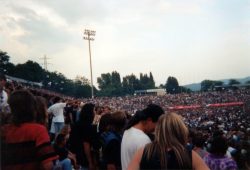 « Je me souviens de la foule massée sur le terrain du stade Saint-Jakob, je n’ai pas eu la chance de pouvoir m’y faufiler alors je me suis rabattue sur les gradins. Avant que le concert ne commence, je me rappelle une gigantesque bataille de bouteilles d’eau vides, qui volaient depuis les hauts de gradins jusqu’en bas. Ce fut mon premier concert de Metallica, et j’en garde un souvenir extraordinaire. Ce groupe légendaire, qui depuis son premier album ne diffusait aucune vidéo sur MTV, n’entrant pas dans le star système, enfin je le voyais et chantais avec ! C’était néanmoins la troisième fois que je voyais AC/DC, mais le plaisir restait toujours aussi intense. »