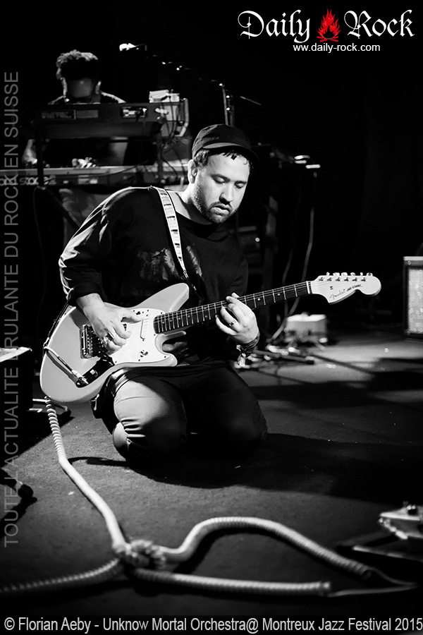 Après cette immersion dans le rock des années 70, je repartais impatient en direction de la Rockcave pour mon dernier concert de la soirée, afin d’y écouter les Unknow Mortal Orchestra. Et je n’ai pas été déçu! Avec sa voix haute perchée, presque chuchotée à certains moments, le chanteur et fin guitariste Ruban Nielson s’évade et nous emmène avec lui dans des morceaux rock savamment orchestrés. Du plus bel effet.