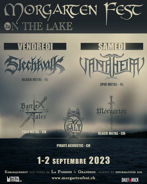 Le samedi 2 septembre, le festival se poursuivra avec une programmation tout aussi enivrante. Vanaheim, groupe aux sonorités célestes du metal symphonique, transportera le public dans un univers fantastique avec leurs mélodies envoûtantes. Morgarten, le groupe éponyme du festival, fera résonner ses riffs épiques et sa voix puissante pour créer une ambiance magistrale. Et pour couronner le tout, The Old Salt Company reviendra sur scène pour offrir une performance captivante, démontrant encore une fois leur incroyable talent.