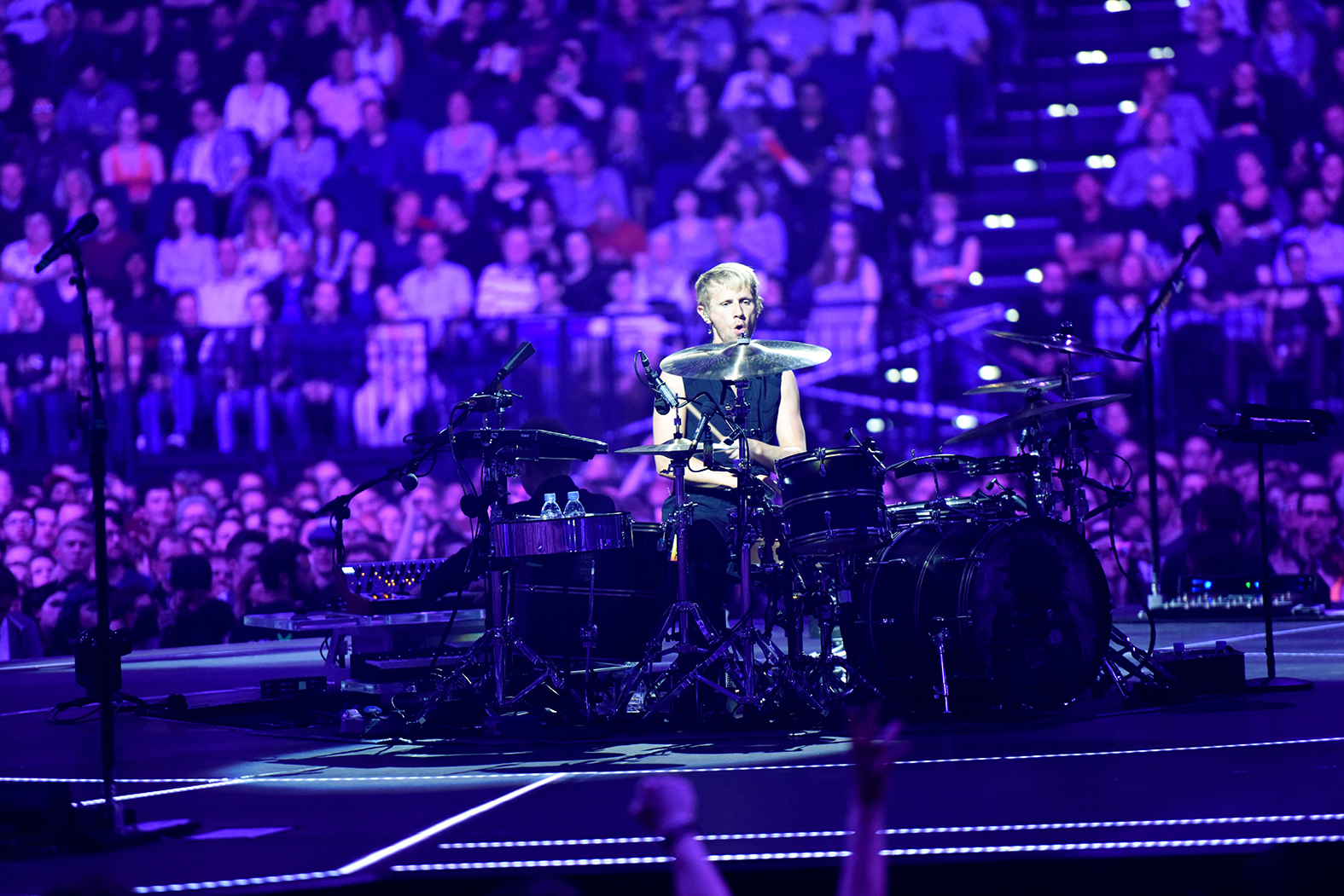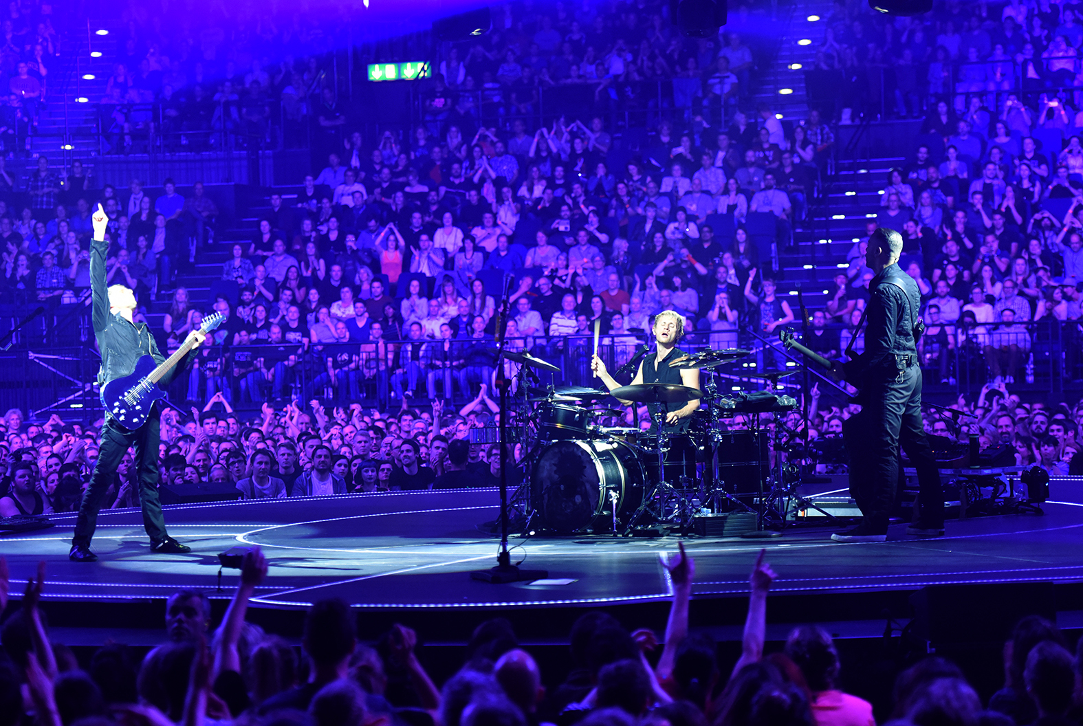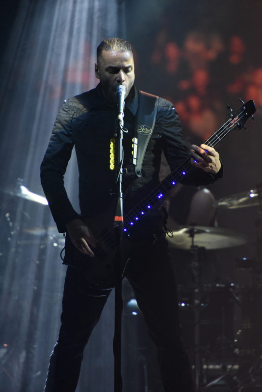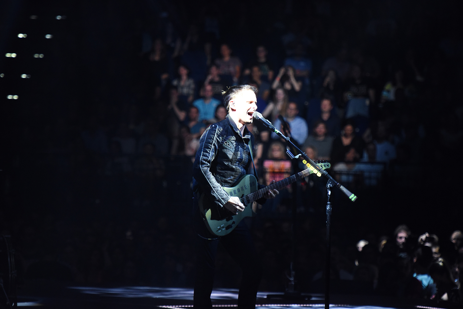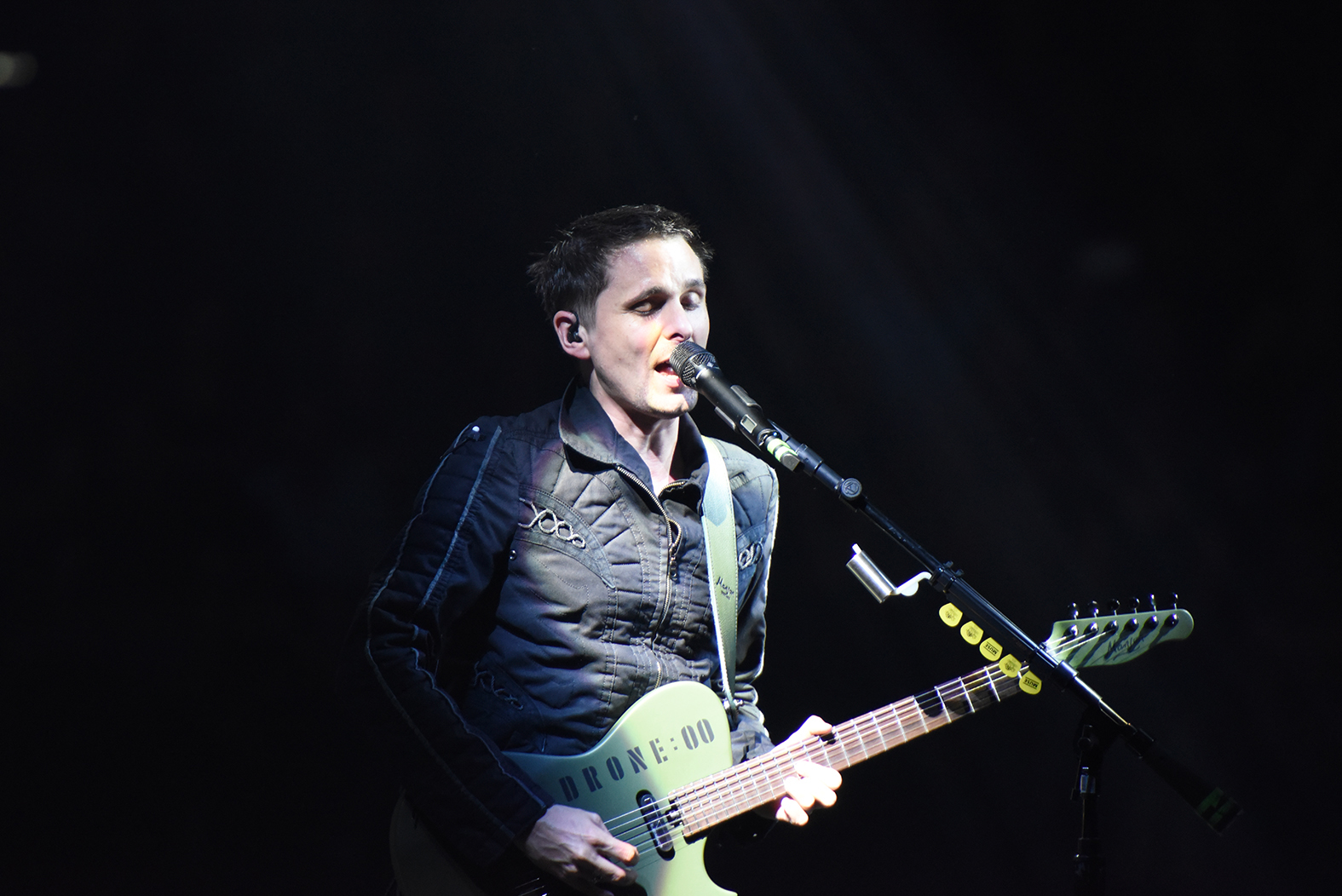 Muse retourne en tournée dans les salles et c’est tout de suite le délire. Les deux concerts planifiés à Zürich étaient-sold out en quelques minutes pour plus de 26’000 fans, qui ont rempli la plus grande salle suisse dans tous les recoins disponibles. Les Anglais de Muse sont bien connus pour leur shows spectaculaires et blindés de technologie, mais ce qu’ils ont concocté pour ce « Drones » tour amène le concept de « concert d’arène » à un niveau supérieur. Un spectacle qu’on pourrait assimiler à « The Wall » de Roger Waters ou le « Full Arsenal » de Metallica. Et comme ce dernier, la tournée est jouée « on the round », avec la scène au milieu de la salle, pour permettre aux spectateurs de jouir du spectacle au maximum, que ce soit au niveau sonore ou visuel, depuis n’importe quelle place de l’arène (et au groupe de vendre plus de tickets !) Une plateforme ronde et tournante forme la partie principale de la scène, avec batterie au centre et plusieurs micros aux bords. Depuis le centre deux énormes catwalks amènes à deux plateformes placées aux extrémités de la salle. Le tout entouré d’autant de lumières et d’effets qu’il serait difficile à compter : des balles transparentes avec des lumières qui volent au dessus de la foule comme des drones, projections de toutes sortes sur un écran rond sur la plateforme principale ainsi que sur des écrans géants qui descendent pour couvrir toute la longueur de la scène. Sans compter les hologrammes des musiciens ou le piano qui sorte depuis une des plateformes. Vous suivez? Pour faire court, magistral!