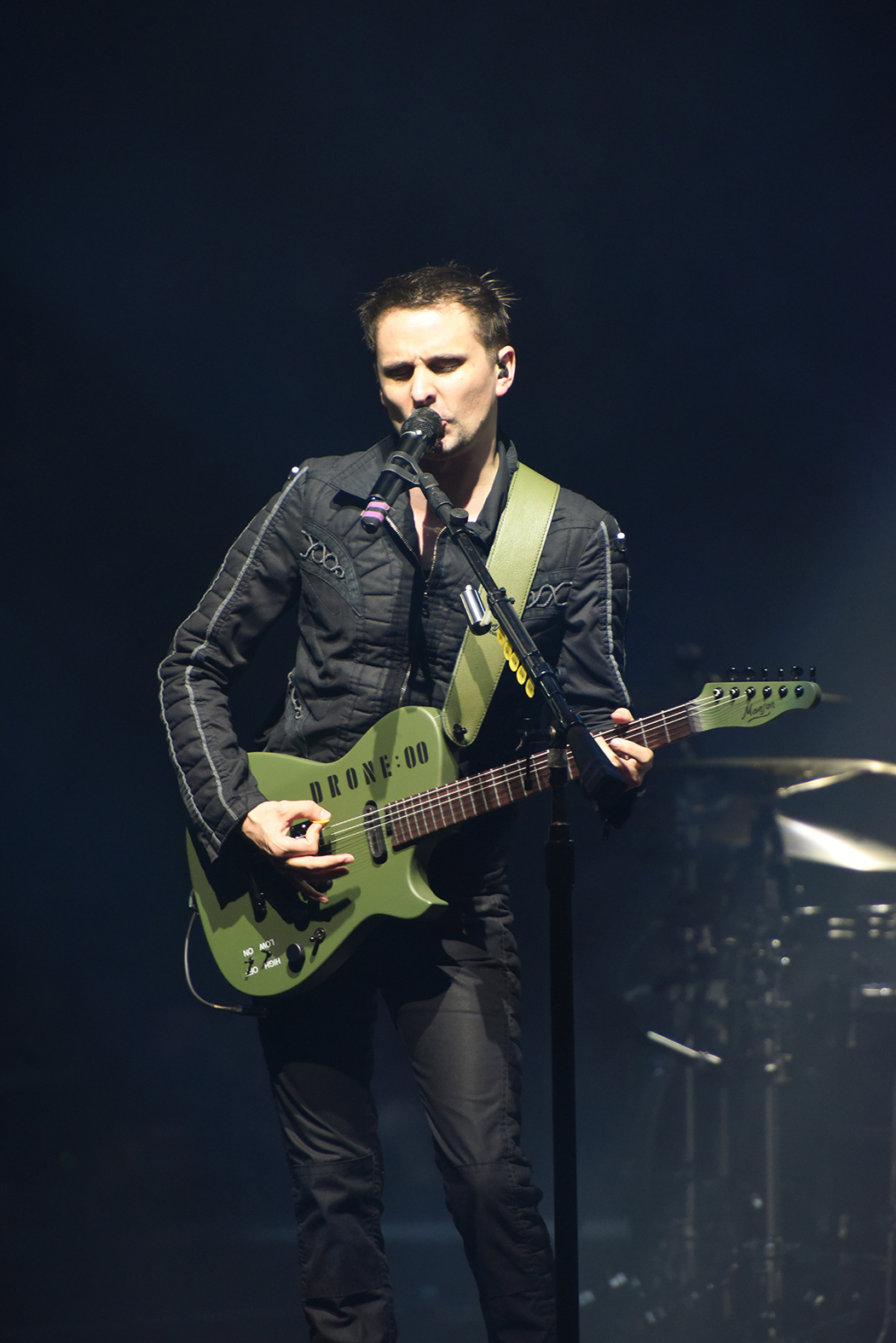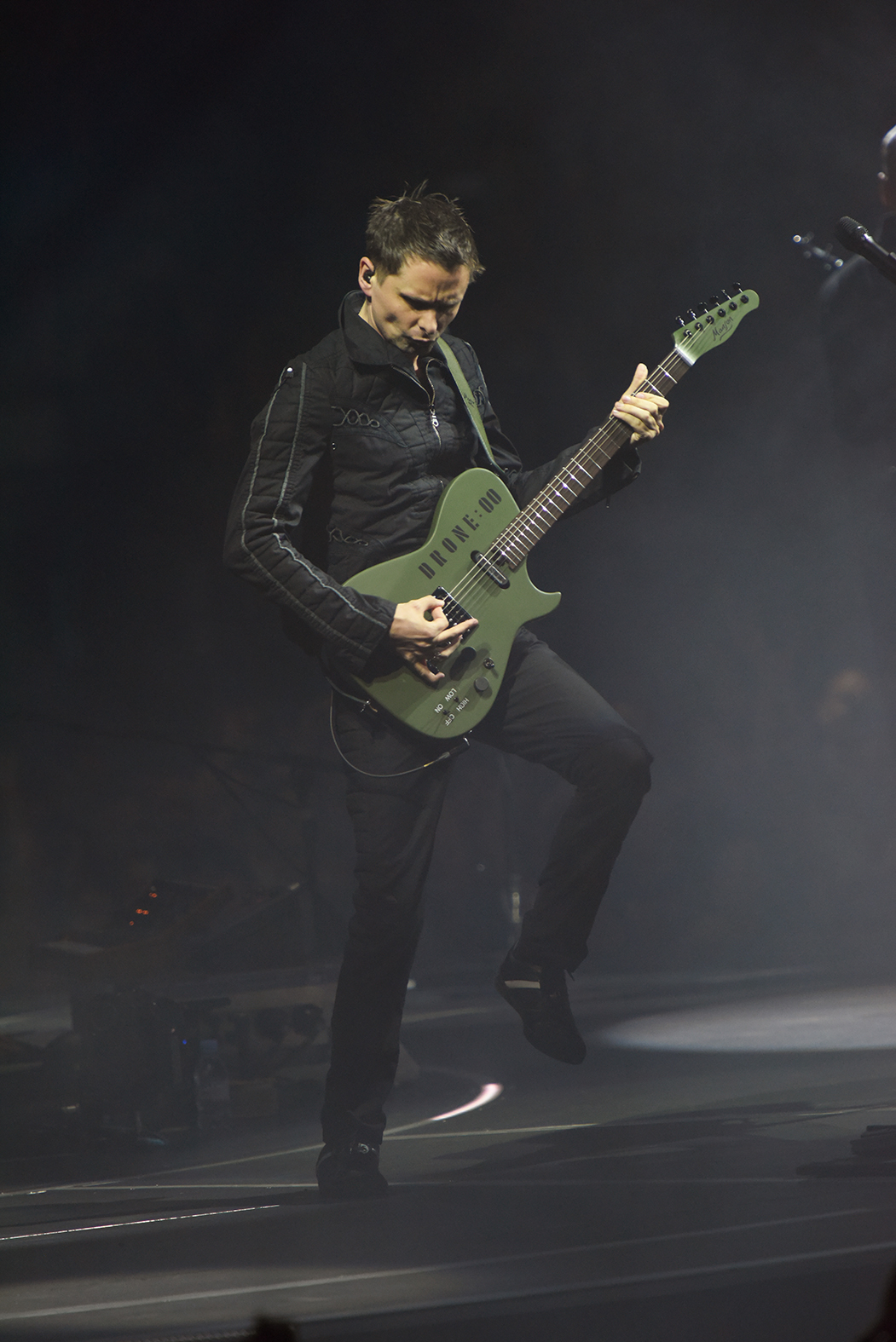Que dire de la partie musicale? Muse sont sans doute des musiciens de haut volet le son qui sortait des boxes de l’énorme ampli était clair et puissant, malgré les restrictions sonores en Suisse. Le plus gros problème d’un concert autant technique et précis est probablement le manque de spontanéité. Tout est calculé au milliseconde et les musiciens doivent se trouver exactement dans un endroit précis de la scène pour permettre la fluidité du show. Et pour un groupe de trois membres, une telle scène pourrait devenir trop grande et dispersive. Trop souvent, on a eu la sensation que le contact entre les musiciens manquait, comme dans les scènes des plus petit théâtres. Par exemple pendant les pauses, parfois embarrassantes, entre les morceaux. Bellamy n’est normalement pas trop bavard, mais là on a remarqué un énorme manque de communication entre le public helvétique, parfois peu enthousiaste, et le groupe. On peu discuter sur la musique, question de goût, mais cependant le trois musiciens anglais donnent une prestation irréprochable de ce côté-là. Les morceaux plus atmosphériques peuvent sembler un peu ennuyeux pour certains, mais quand le groupe décide de ‘rocker’, il le font avec brio. Leur set-list était un best-of de leur carrière avec un certain accent sur le dernier CD, ‘Drones’. Ce concert était sans doute une expérience inoubliable pour les fans du groupe, mais les curieux ont sûrement été satisfaits par un spectacle peut-être un peu pompeux et aceptisé, mais unique en son genre.