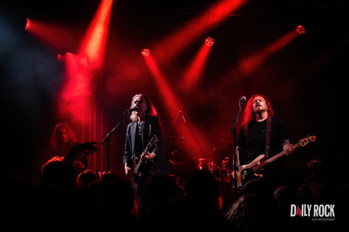 Une setlist pêchue au cours de laquelle des classiques musclés auront à nouveau leur heure de gloire, Justin et ses soldats soufflant vigoureusement sur les braises (‘Echo November’, ‘Never Arriving’, ‘Here Comes the War’, ‘Fate’ et j’en passe). ‘Get Me Out’ met en transe une belle et forte escouade de die hard fans qui se lance dans un pogo convivial et chante tous les titres par cœur. Puis Justin lâche : « ce titre n’a pas besoin d’introduction bien que le contexte soit différent » et de faire retentir les premiers accords de ’51st State’ écrit dans les années thatchériennes chahutées, mais toujours d’actualité avec l’hégémonie de Donald T.