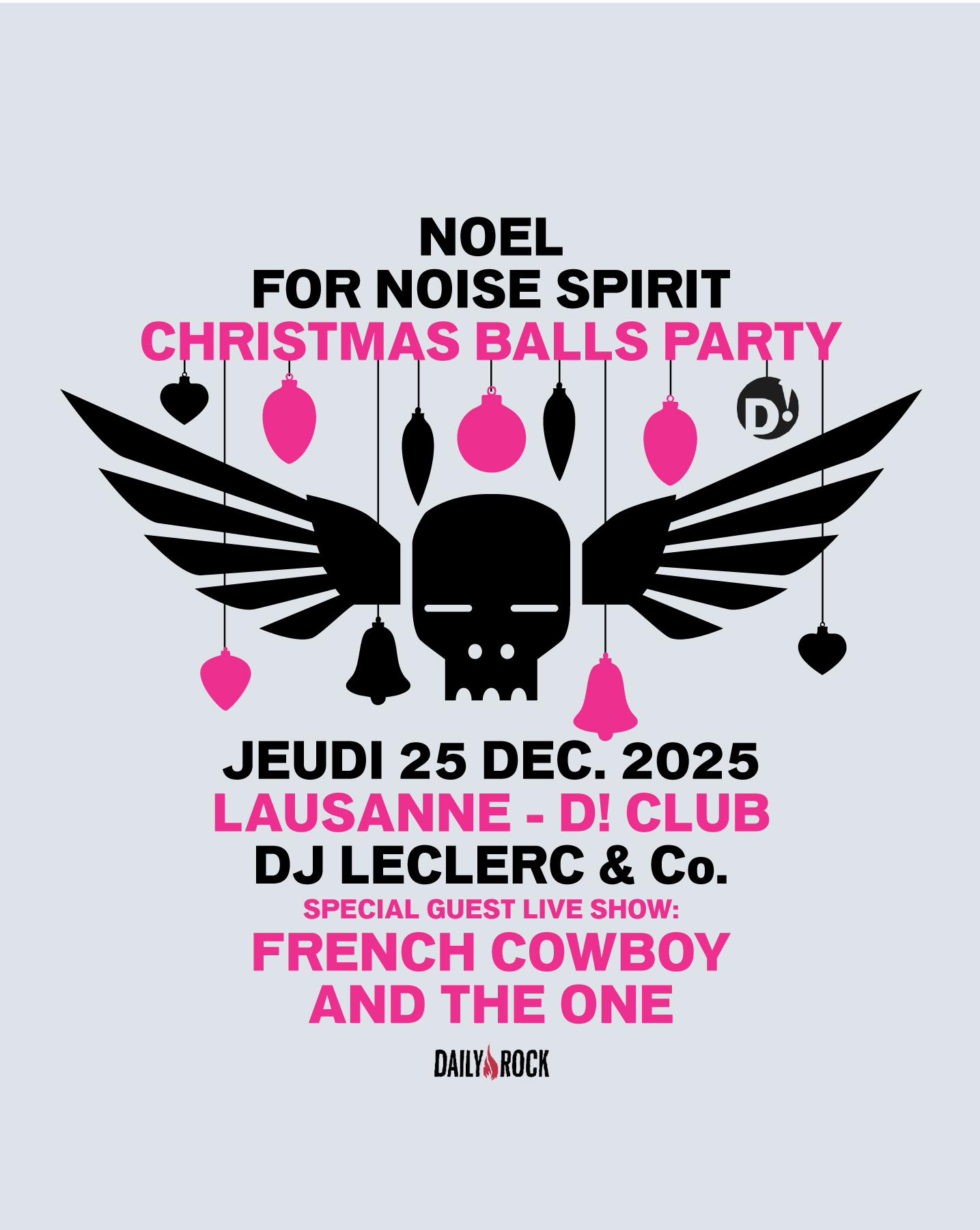 La tradition de Noël prend un virage électrique : le For Noise Spirit est de retour au D! Club, et cette année, il vient botter les fesses du Père Noël ! Si vous en avez marre des guirlandes et des chants soporifiques, préparez-vous à une décharge de décibels. L’ambiance du célèbre festival débarque dès 22h00 , et l’ouverture est signée DJ Leclerc pour un warm-up bien senti.