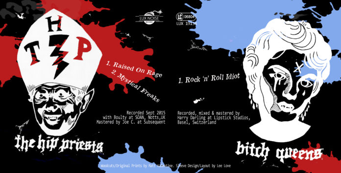 Le groupe de punk glam de Bâle, les Bitch Queens, ont l’habitude de sortir des splits avec d’autres groupes en 45 tours. Ils ont remis le couvert avec leurs potes anglais plutôt garage punk des Hip Priests. Il est disponible via la page bandcamp du groupe (lien ci-dessous) et est disponible en vinyle coloré rouge ou transparent. De plus, une des superbes cartes réalisées par l’artiste Vojtěch Woody Troják sera offerte à l’achat d’un 45 tour!