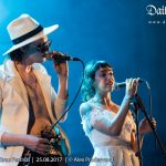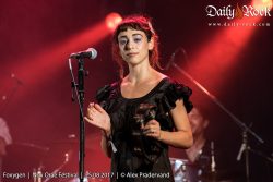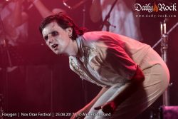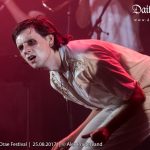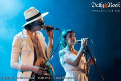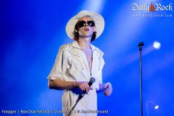 20h45, la luminosité commence à bien baisser et les choses sérieuses peuvent commencer avec les Américains de Foxygen. Le binôme a un son vraiment sympa et un style difficilement qualifiable lui-aussi, mais qui va bien avec la toute première partie. Sorte de mélange entre Andrew Eldricht millésime 1985 et Jarvis Cocker pour le look, le chanteur en fait des tonnes, se change entre les morceaux et menace même (gentiment) un spectateur après quelques morceaux déjà (« You dont wanna mess with me dude, seriously »). Avec un nouvel album sous le coude, ‘Hang’, sorti cette année, et une créativité bien nourrie, Foxygen a aisément de quoi remplir sa prestation. Accompagnés de 7 musiciens, le duo se démène pour attirer l’attention. La prestation est toutefois un peu en dents-de-scie avec certes des moments sympas, mais dans l’ensemble trop décousu.