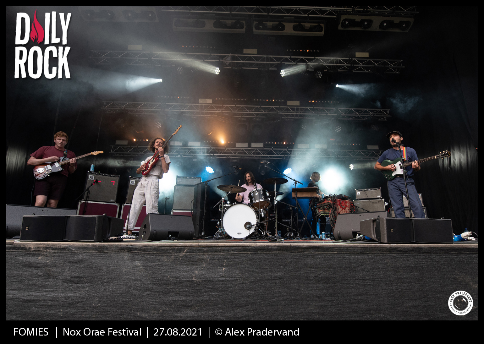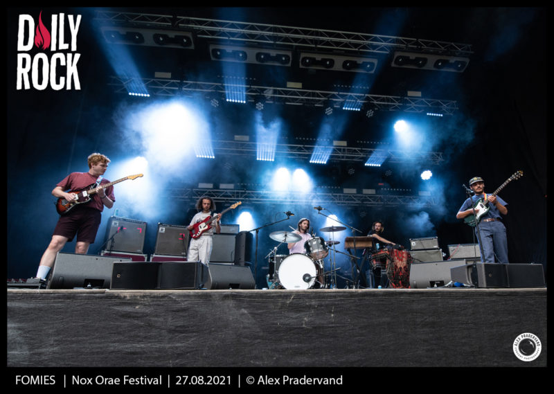 Le premier groupe sur scène, ce sont les Fomies, cinq jeunes gens du coin bien décidés à jouer fort pour lancer la soirée. Le début du set est très instrumental, le chanteur se concentrant principalement sur sa guitare. Musicalement, le programme parle de « Lakeside garage fuzz ». Autant je ne voyais pas trop quoi ce à quoi cela pouvait correspondre avant le concert, qu’après, je suis totalement d’accord avec cette définition. La fin du concert est plus rythmée et l’ambiance décolle pour le dernier quart d’heure. Mission réussie.