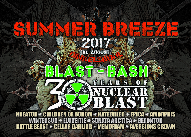 Le plus gros label indépendant au monde, Nuclear Blast, fête son 30ème anniversaire en 2017 et ça se passera au Summer Breeze Open Air à Dinkelsbühl ! C’est pourquoi cette année la Nuclear Blast Label Night ne se déroulera pas le mercredi. Au lieu de ça, toute la programmation de la Main Stage le vendredi 18 août 2017 sera placée sous le signe « Blast Bash – 30 Years Of Nuclear Blast« . Tous les groupes qui joueront ce jour-là sur la Main Stage seront des groupes qui ont signé Nuclear Blast, ce qui vous donnera l’occasion de vous familiariser avec une petite partie du catalogue du label allemand.
