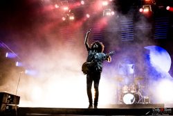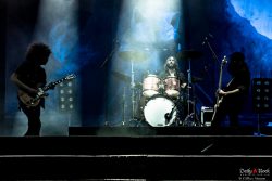 Bref, on a pu assister à quelques concerts et, malgré le temps moisi, on est revenu enchanté ! Autant dire que par beau temps, ça doit ressembler au paradis… Dans l’ordre, on a pu assister à la prestation sympathique (bien qu’écourtée) du bluesman Seasick Steve, à la débauche d’énergie des charismatiques belges de Triggerfinger, au show rôdé des australiens de Wolfmother, à l’apparition dans le brouillard de The Pretty Reckless et, bien sûr, à l’ouragan Toten Hosen, emmenés par le légendaire Campino. Quel groupe de scène, les amis ! Notre seul regret sera que Daily Rock n’ait pas obtenu l’autorisation de le photographier. En effet, seuls certains médias ont été autorisés à prendre des photos, sur décision du management du groupe (oui, tout ça c’est un peu de la cuisine interne, mais comme il s’agissait clairement de la tête d’affiche du festival, il nous semble tout de même logique d’expliquer pour quelle raison nous n’avons pas ramené de clichés de ce concert…).