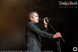 Avec un grand pied de micro seul sur le devant de la scène, le chanteur assure le spectacle pratiquement à lui tout seul. Si à la base la new wave se danse d’une manière assez étrange qui fait souvent sourire, Andy McCluskey lui s’en donne à coeur joie pour en rajouter une couche en reproduisant les pires moves possibles avec un grand sourire. A presque 60 ans, il déborde d’énergie et son public le suit sans se faire prier. En outre, le bonhomme n’est pas non plus avare de bons mots et communique beaucoup (après Mark Lanegan et Tricky, cela fait là aussi très bizarre).
